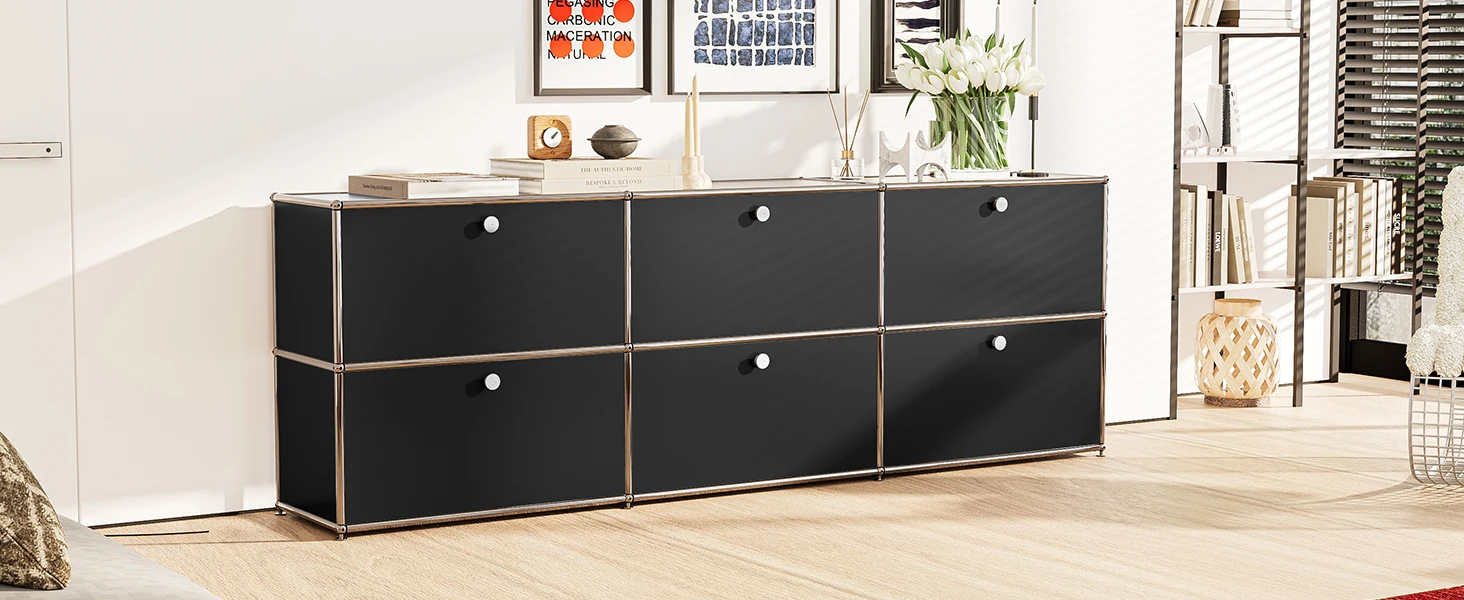 3. The size of this multi-function sideboard is 14.76 "D x 14.76" W x 14.76 "H. You can use it as a kitchen storage room to store condiments, coffee, tea, pottery, etc. It can also be used as an entrance cabinet, very suitable for decorative items, sundries, etc. It can also be used as a TV rack in the bedroom or an office file cabinet in the home office. We look forward to unlocking more scenes for your use.