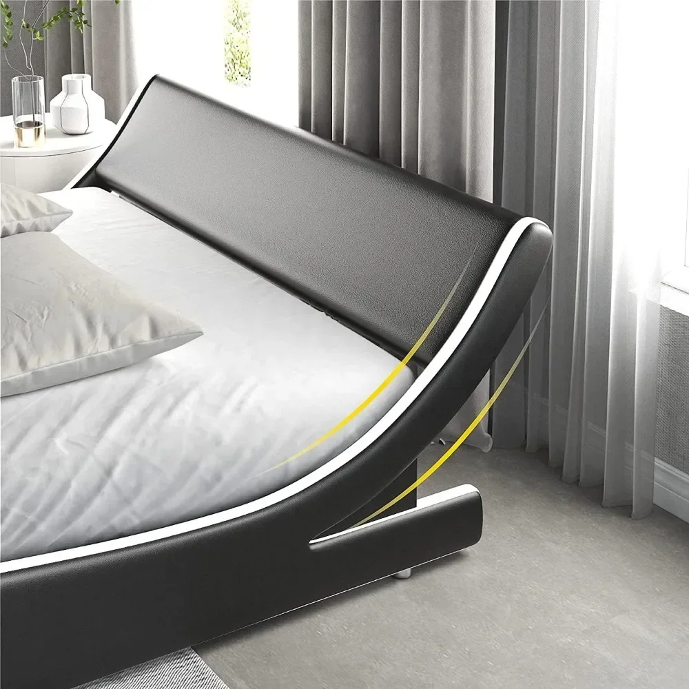 Bed FrameUpholstered Queen Platform Bed Frame Modern Low-profile Sleigh Bed With Faux Leather Headboard For Easy Assembly