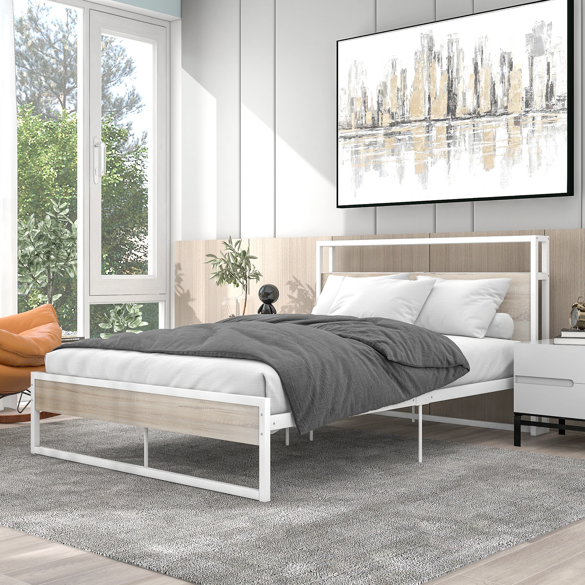 The perfect combination of metal and wood makes this bed both sturdy and beautiful, the wood planks are MDF with a textured PVC finish, This Metal bed is the perfect match for your interior, whether rustic or contemporary. This bed is available in two colors and two sizes, white and black, FULL size and QUEEN size, you can always find a bed that suits you