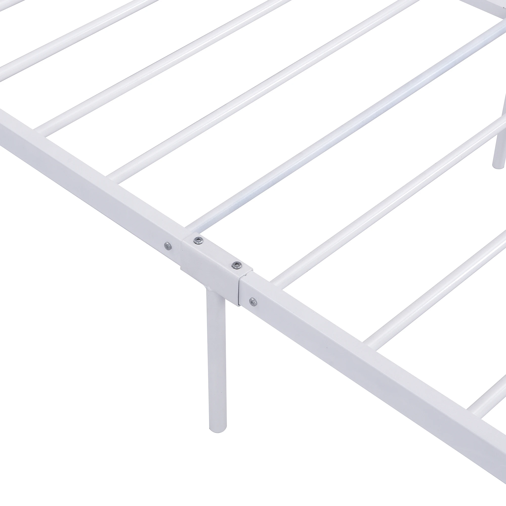 This metal bed frame is compatible with queen size mattresses (mattress not included), no box spring required. 14 bed slats provide good support for the mattress,Load bearing can reach 770LBS