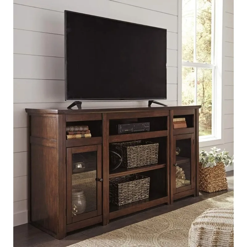 Signature Design by Ashley Harpan Traditional TV Stand Fits TVs up to 40", Adjustable Shelf and 2 Cabinets For Storage, W797-18, Brown