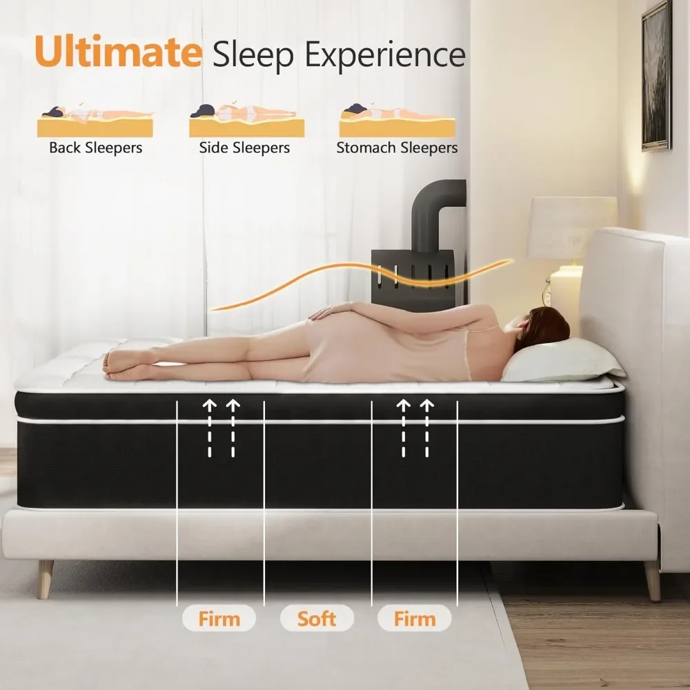 - 𝐌𝐎𝐓𝐈𝐎𝐍 𝐈𝐒𝐎𝐋𝐀𝐓𝐈𝐎𝐍 𝐃𝐄𝐒𝐈𝐆𝐍: The Hybird Mattress King Size is consists of individually pocketed springs which will provide corresponding support for your body, neck, shoulders, waist, hips and legs, allowing you to maintain a comfortable sleep postures, relieve back pain, and isolate motions to avoid disturbing your companion during sleep. Features stronge edge support to prevent slipping.