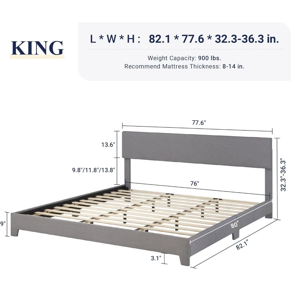 King Size Platform Bed Frame With Adjustable Upholstered Headboard Easy Assembly Heavy Duty Mattress Foundation Noise-Free Home