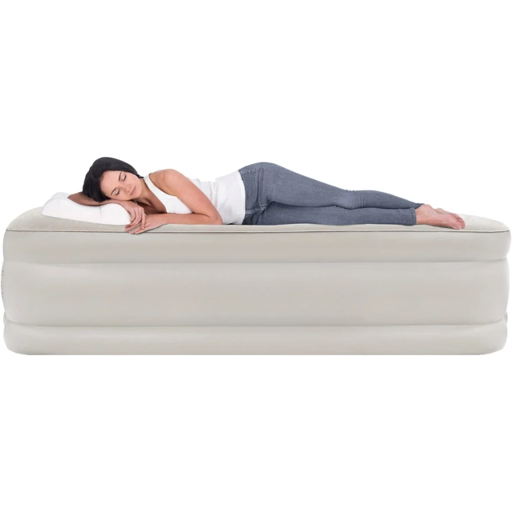 • Easy to use plug in internal pump allows fast & easy inflation / deflation. The mattress reaches full inflation in under 2 minutes 30 seconds. The air mattress is designed for in-home use and is perfect for overnight guests, friends or relatives, and camping trips. Remember, although it holds air extremely well, you can always click the pump on for a few seconds to inflate or deflate to your desired comfort level.