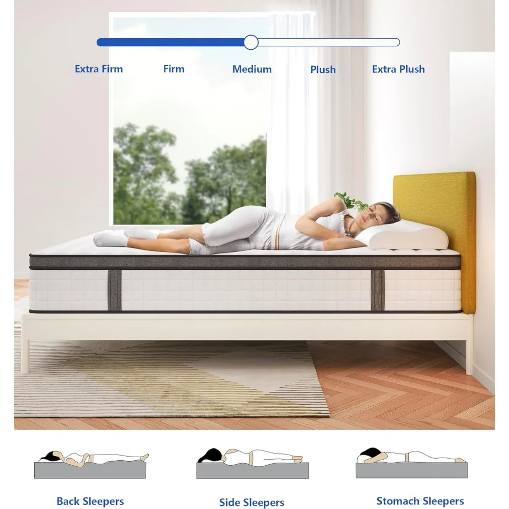 • Queen Mattresses Sweet Sleep and Comfortable Support: 12 inch queen size mattresses memory foam mixed with multi-layer foam and independent spring support system ensures that your weight is evenly distributed from head to toe and provides targeted support to fully relax muscles and enjoy a good sleep experience.