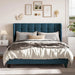 Queen Size Platform Bed Frame with Wingback, Fabric Upholstered Square Stitched Headboard and Wooden Slats