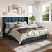 - Transform your bedroom into a stylish sanctuary with our stunning bed frame featuring a chic wingback design and square-stitched fabric upholstered headboard.