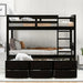 Twin over Twin Wood Bunk Bed with Trundle and Drawers, Espresso |