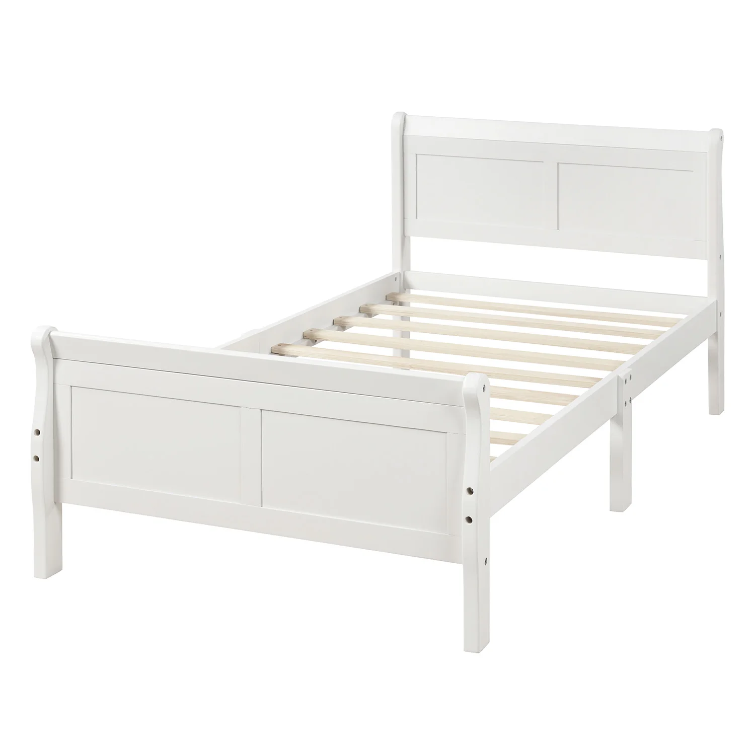 Wood Platform Bed Twin Bed Frame Mattress Foundation Sleigh Bed with Headboard/Footboard/Wood Slat Support Bedroom Furniture