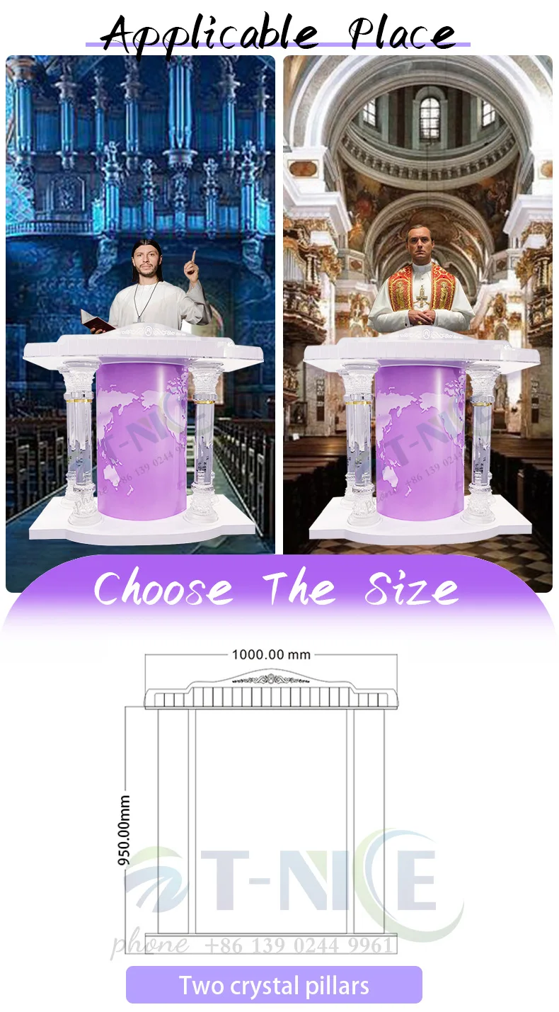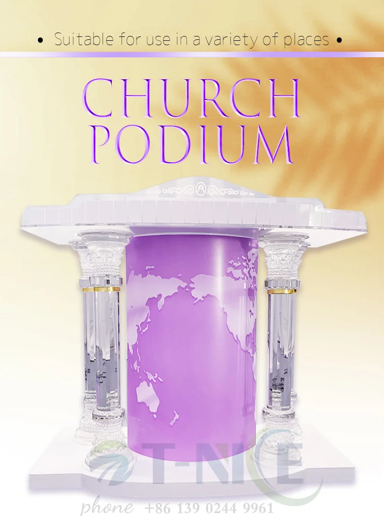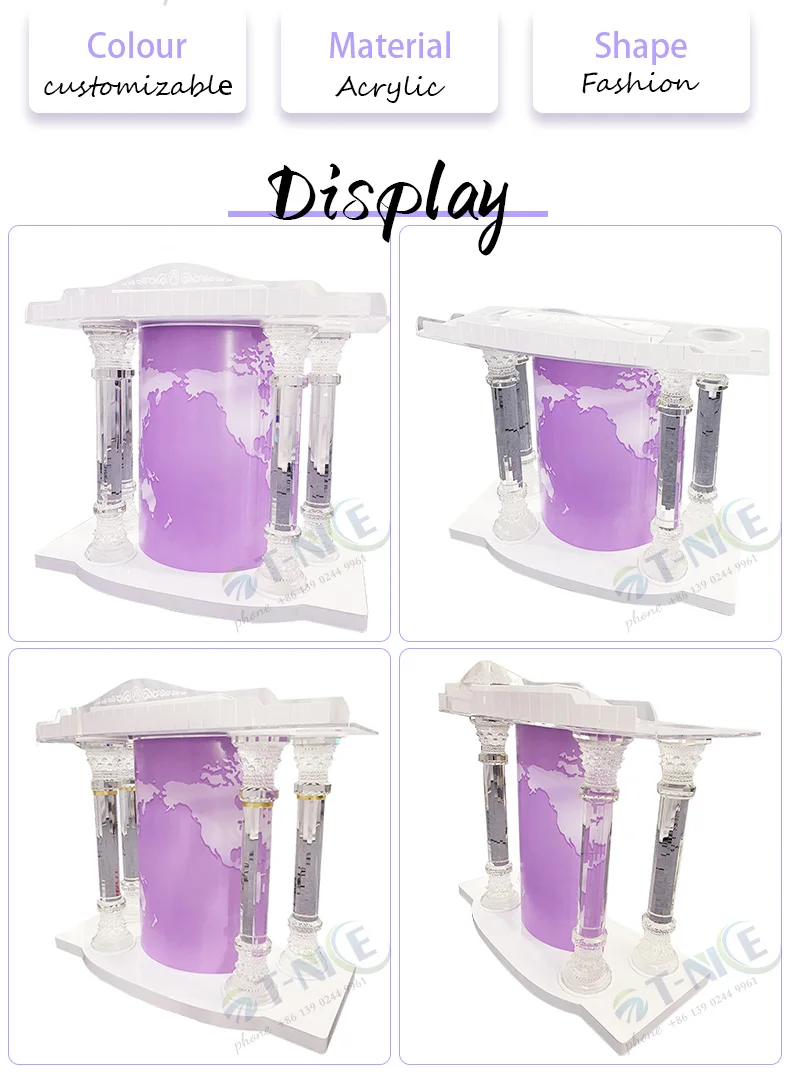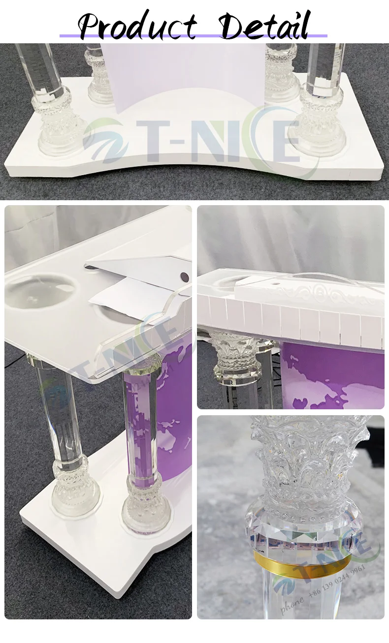 2024 AKLIKE Free Shipping Modern Rostrum Custom Purple Crystal Church Pulpit Clear Lectern Custom Theater Furniture