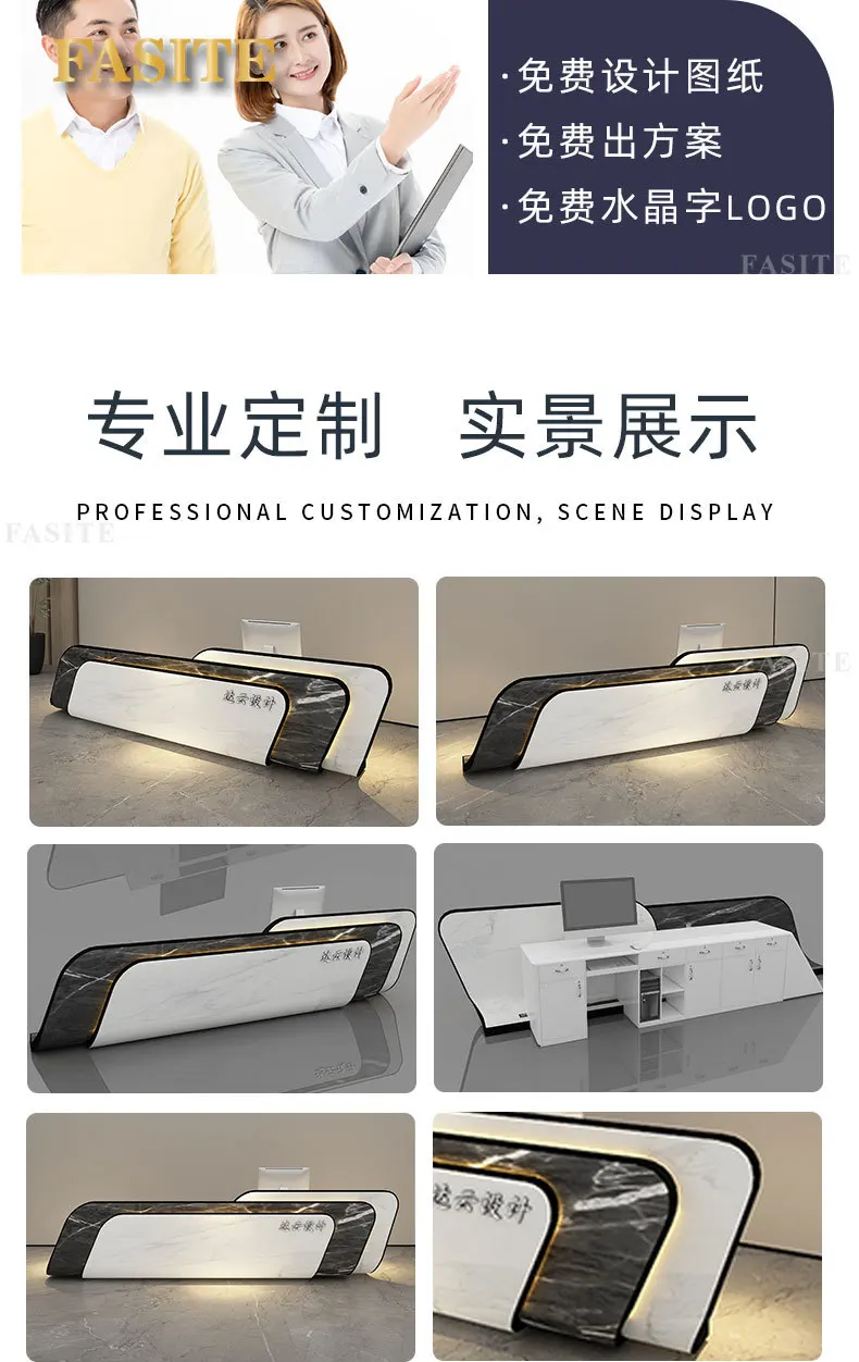 Customized modern and minimalist baking paint for commercial use at the front desk reception desk of the company's hotel