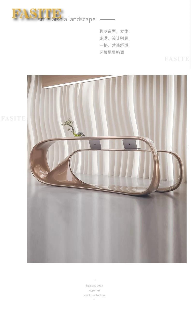 Front desk design, unconventional creativity, fashionable reception, fiberglass painted curved modern hotel