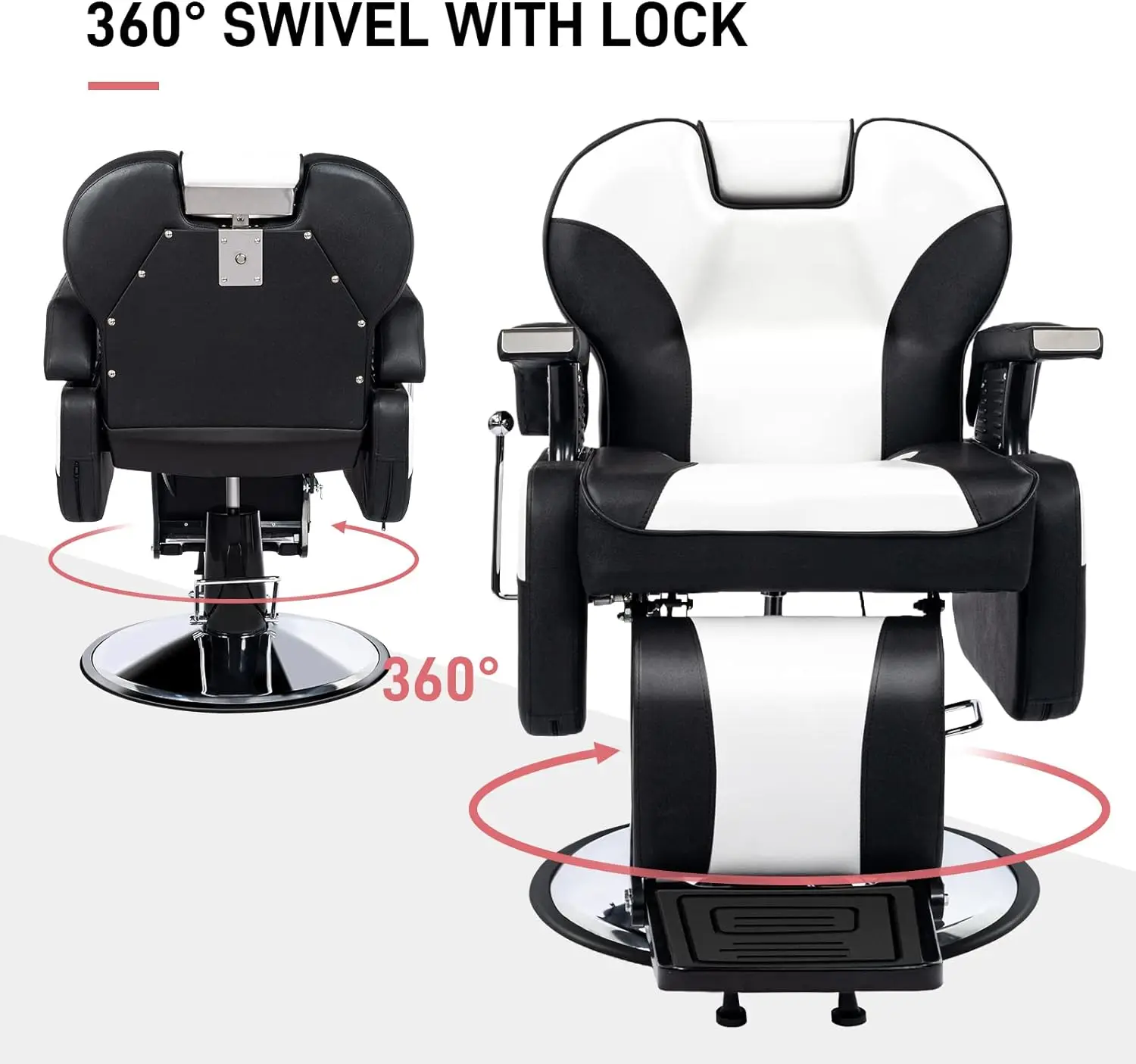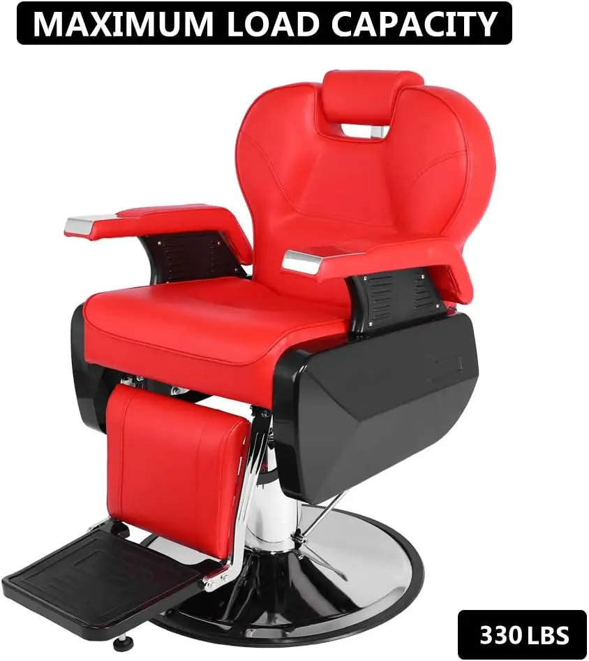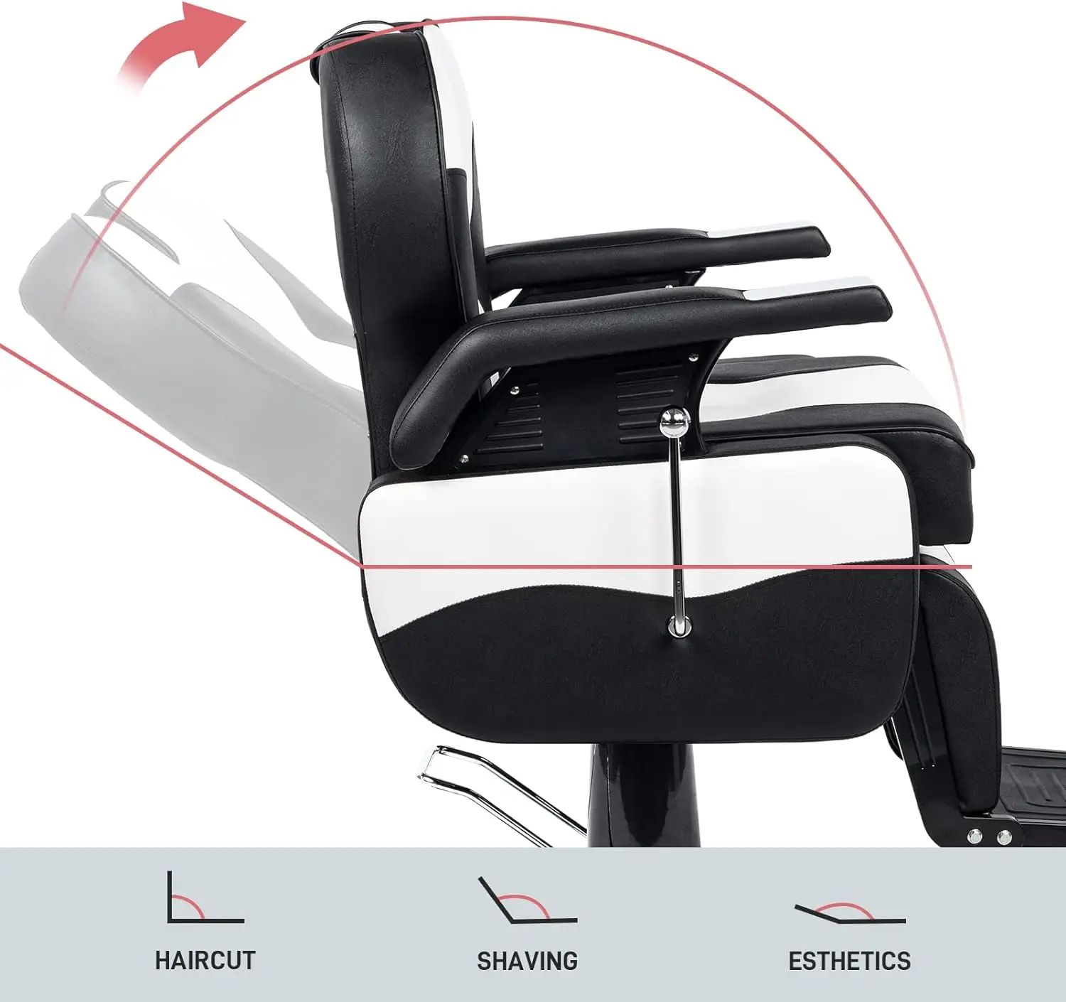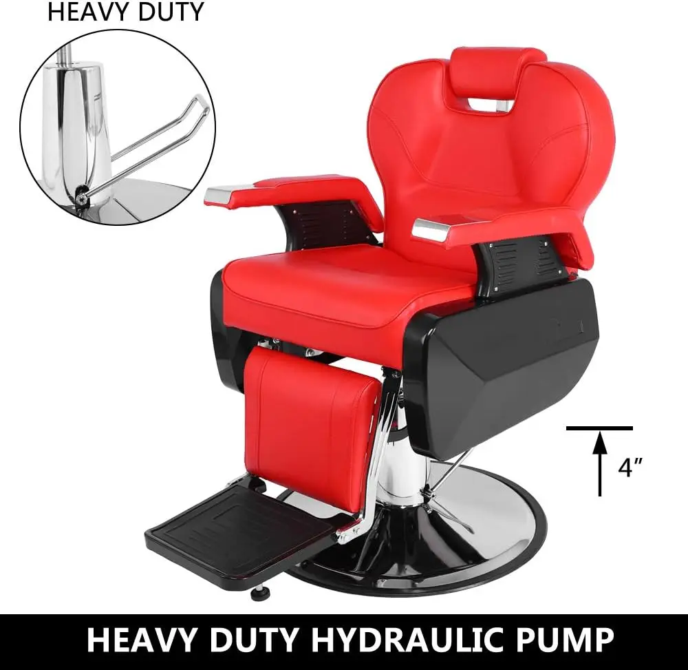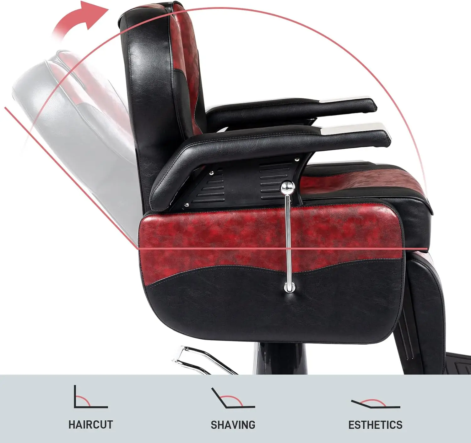 - 【Multifunctional & Classic fashion design】Our barber chair features pull-up head support, angle adjustable back and footrest, heavy duty hydraulic pump. It fits all types of people in different heights. Advanced PVC leather, durable and flexible, can create a luxury appearance in the salon.