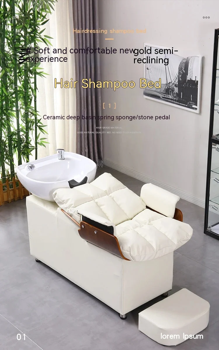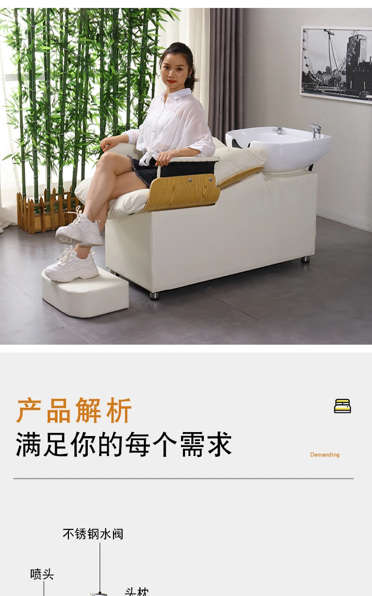 Barber Shop Hair Salon Shampoo Chairs Bed Head Spa Massage Lounge Shampoo Chairs Beauty Hairdressing Sillas Furniture QF50SC