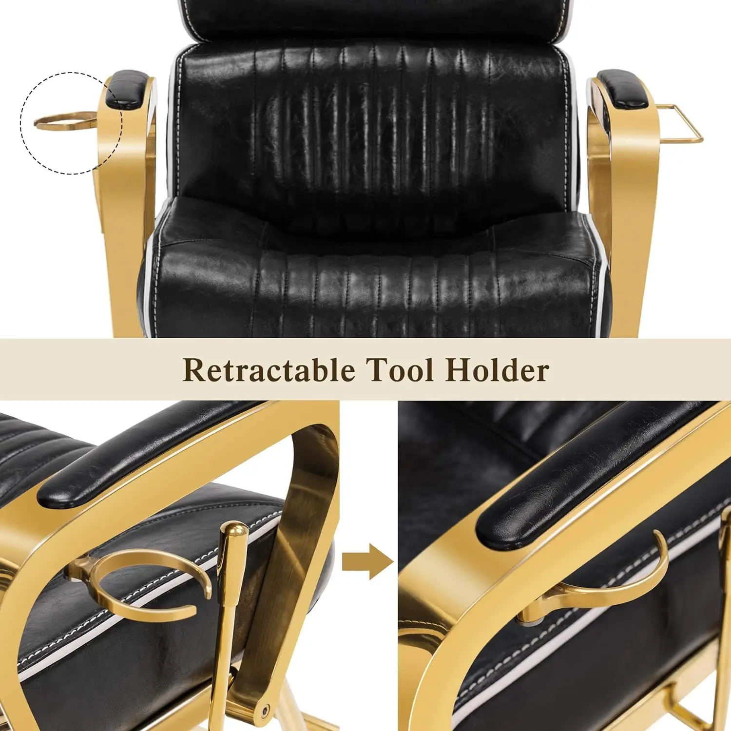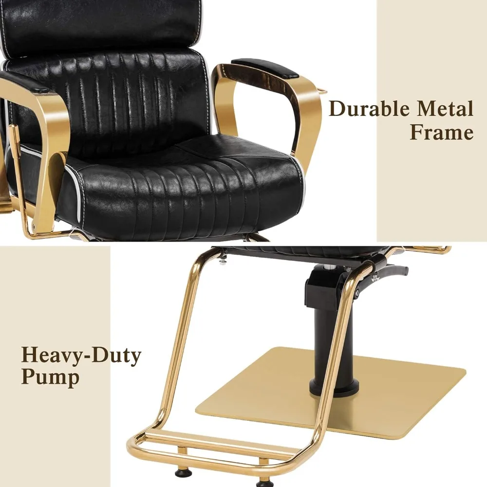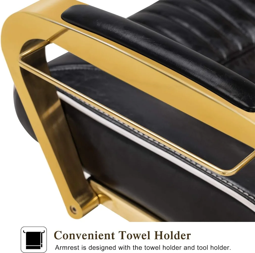 BarberPub Vintage Barber Chair Metal Hydraulic Recline Beauty Spa Salon Styling Equipment 3078 (Gold)