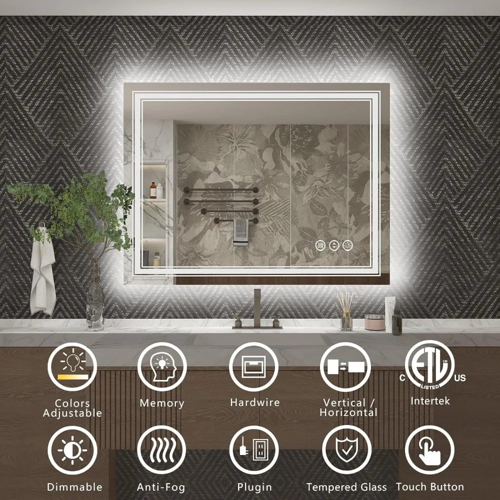 Bathroom Mirror, Wall Illuminated Makeup Mirror, Dimmable, Shatterproof, Anti Fog, Headlight+backlight Bathroom Mirror