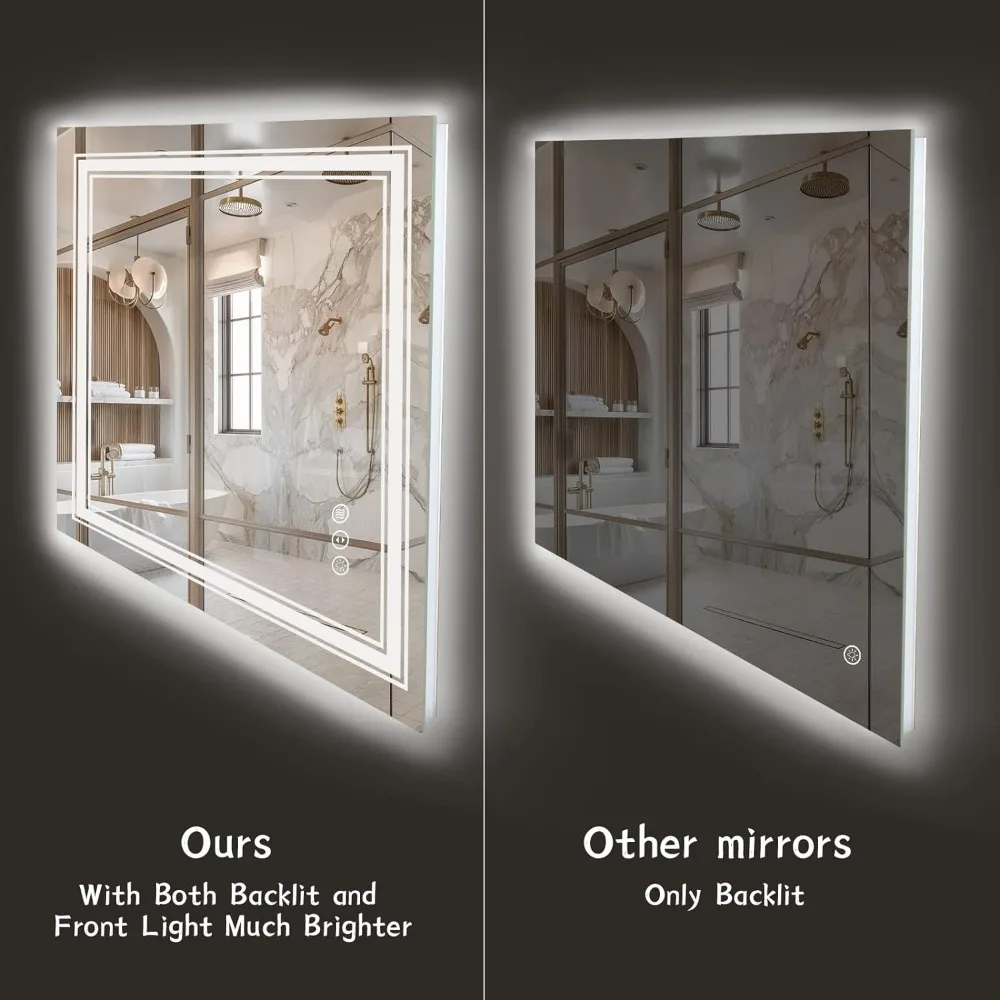 - 【Dual Lighting with Back Lit & Three-line Front lit】Builted in high quality 24W light strips, GOLOMO LED Bathroom Mirror are combinationed of front light and backlit, which will be brighter and clearer to your daily life when you are doing makeup, skincare or shaving. The design of three-line of front lit are more advanced and attractive than other lighted bathroom mirror.