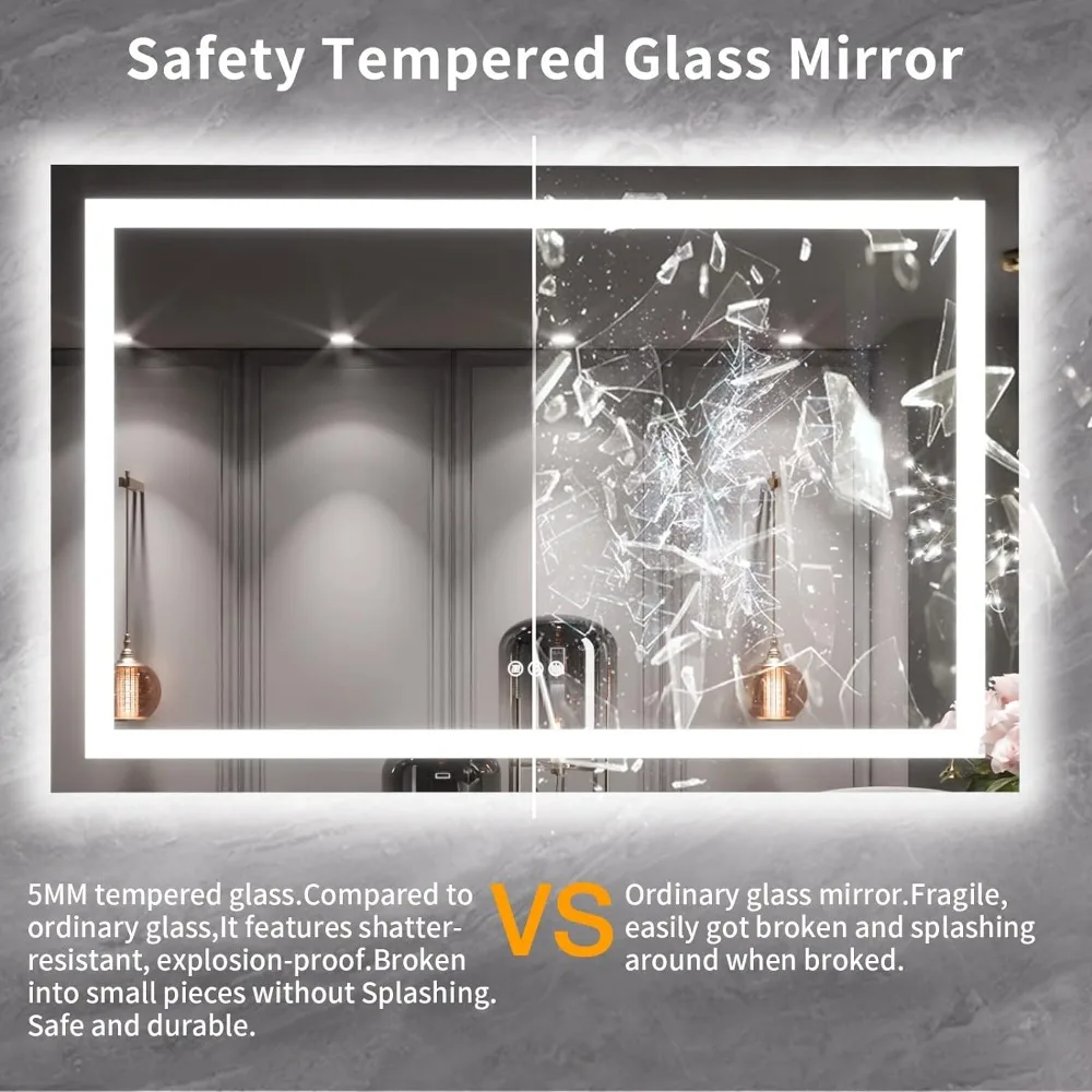 - 【Tempered Glass, Shatter-Proof, Sturdy and Durable】: Different from other mirrors, LOAAO led bathroom mirror is designed with 5MM tempered glass which features shatter-proof, explosion-proof. Sturdy, durable and safe to use. Decent mirror built with solid material.The package for shipping is well and securely designed with all-around protective Styrofoam with passed drop test. no worry about the breakage.