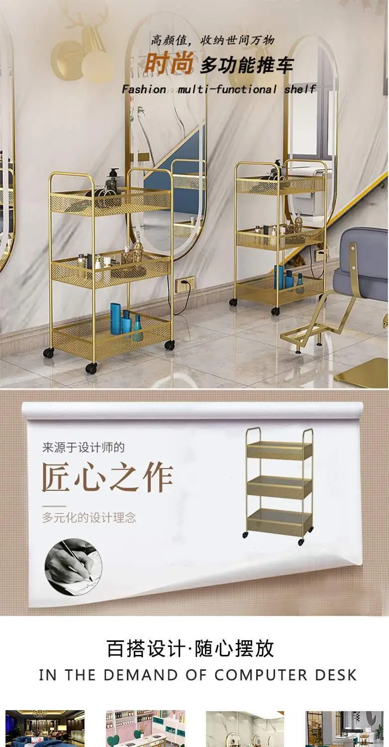 Beauty Cart Trolley Storage Rack Wheel Barber Shop Nail Salon Special Tool Cart Snack Storage Rack Bar Cart for Kitchen Rolling
