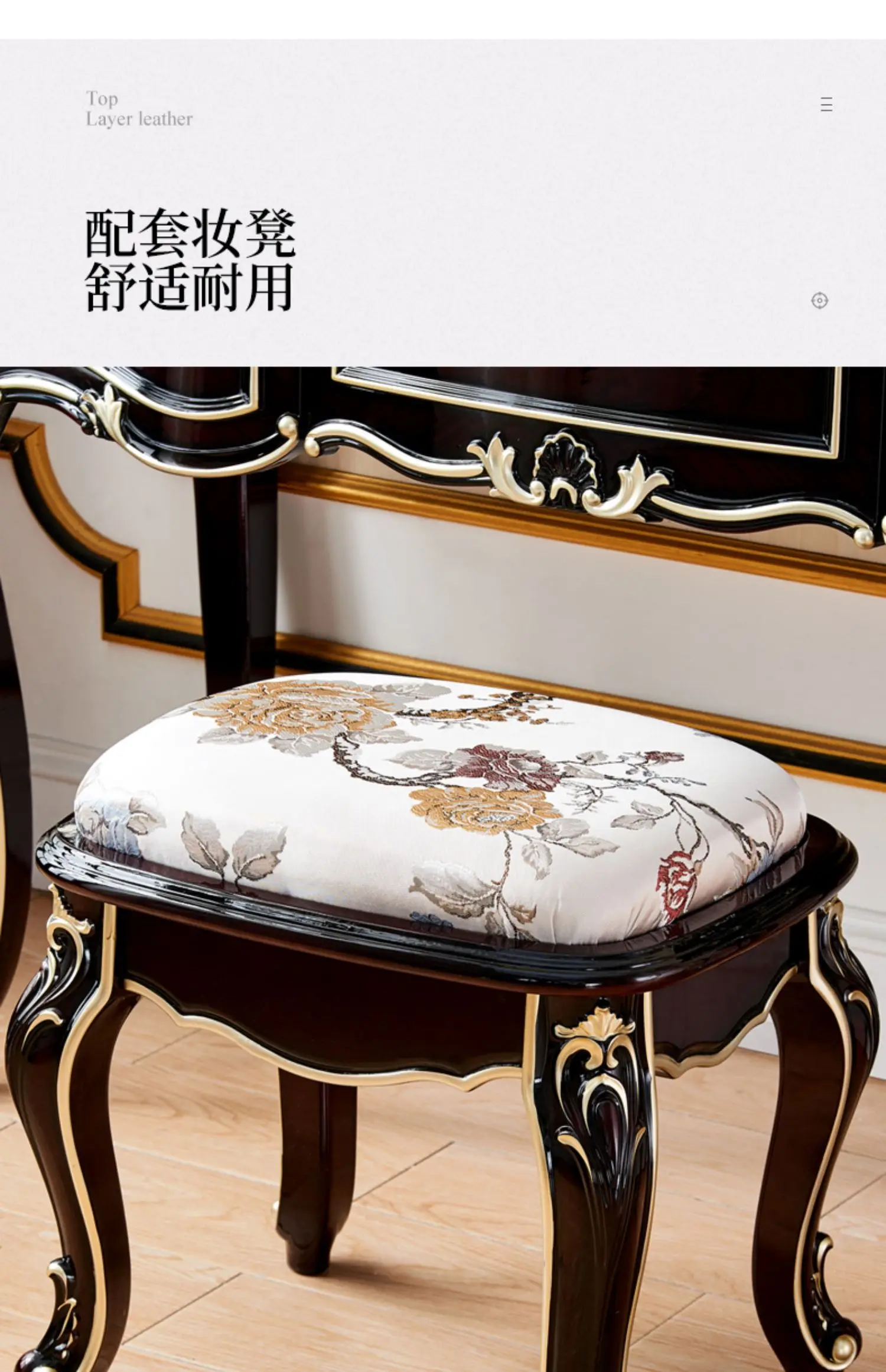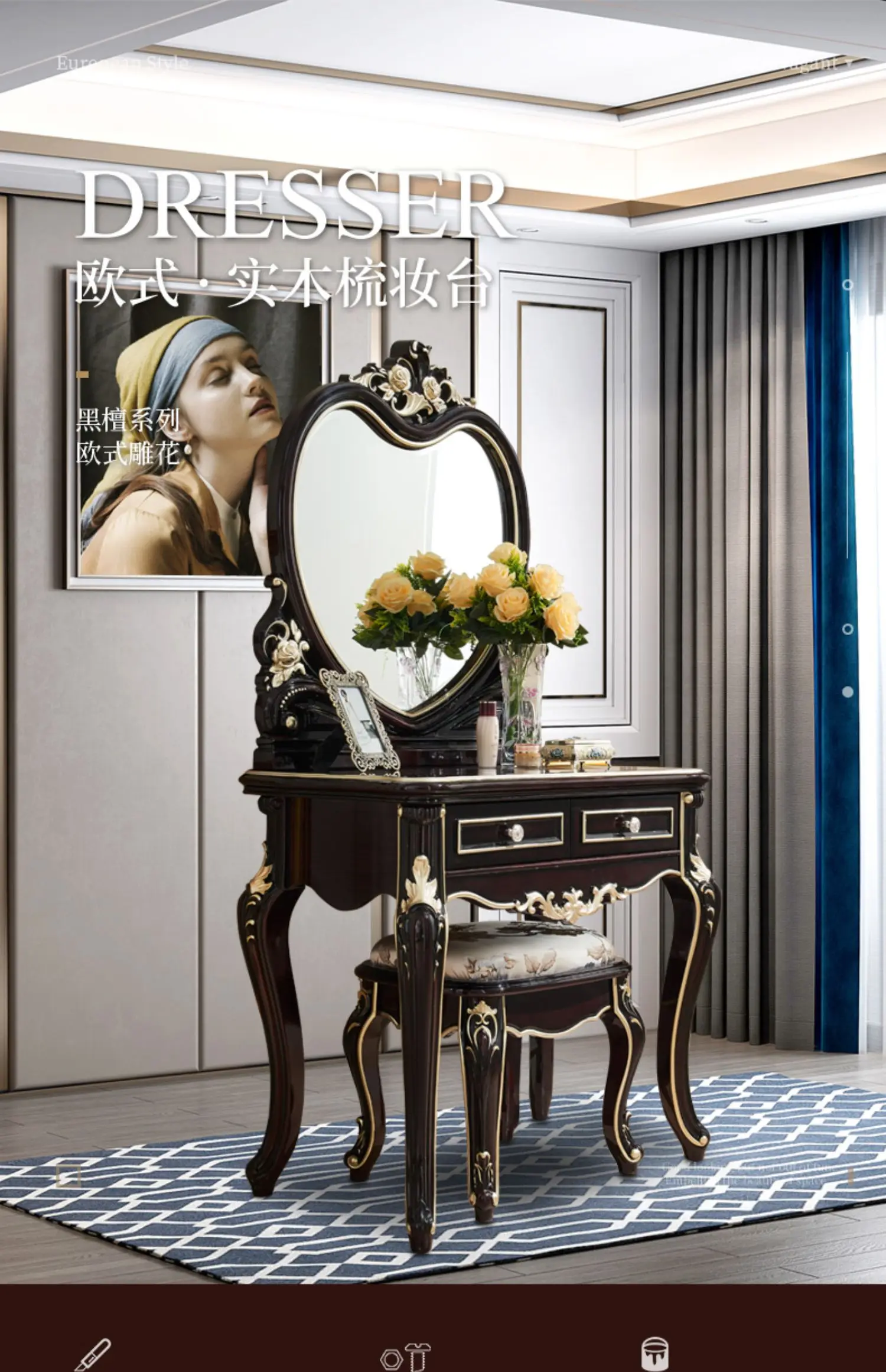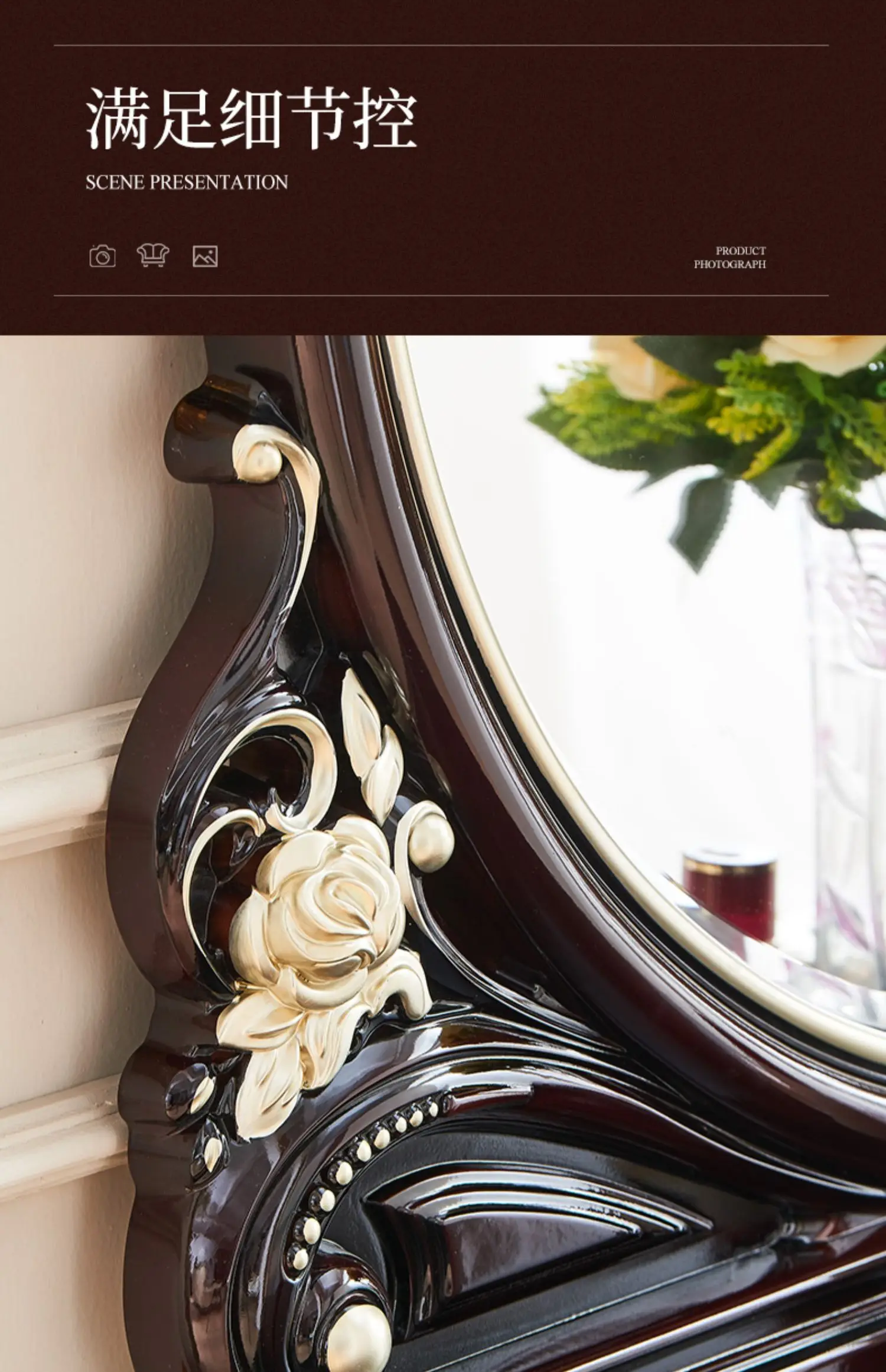 Bedroom furniture, solid wood dressing table, wine red villa makeup table and stool
