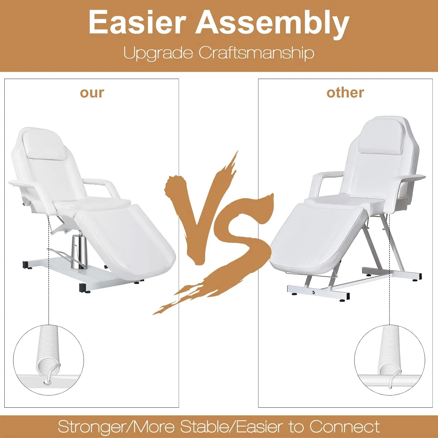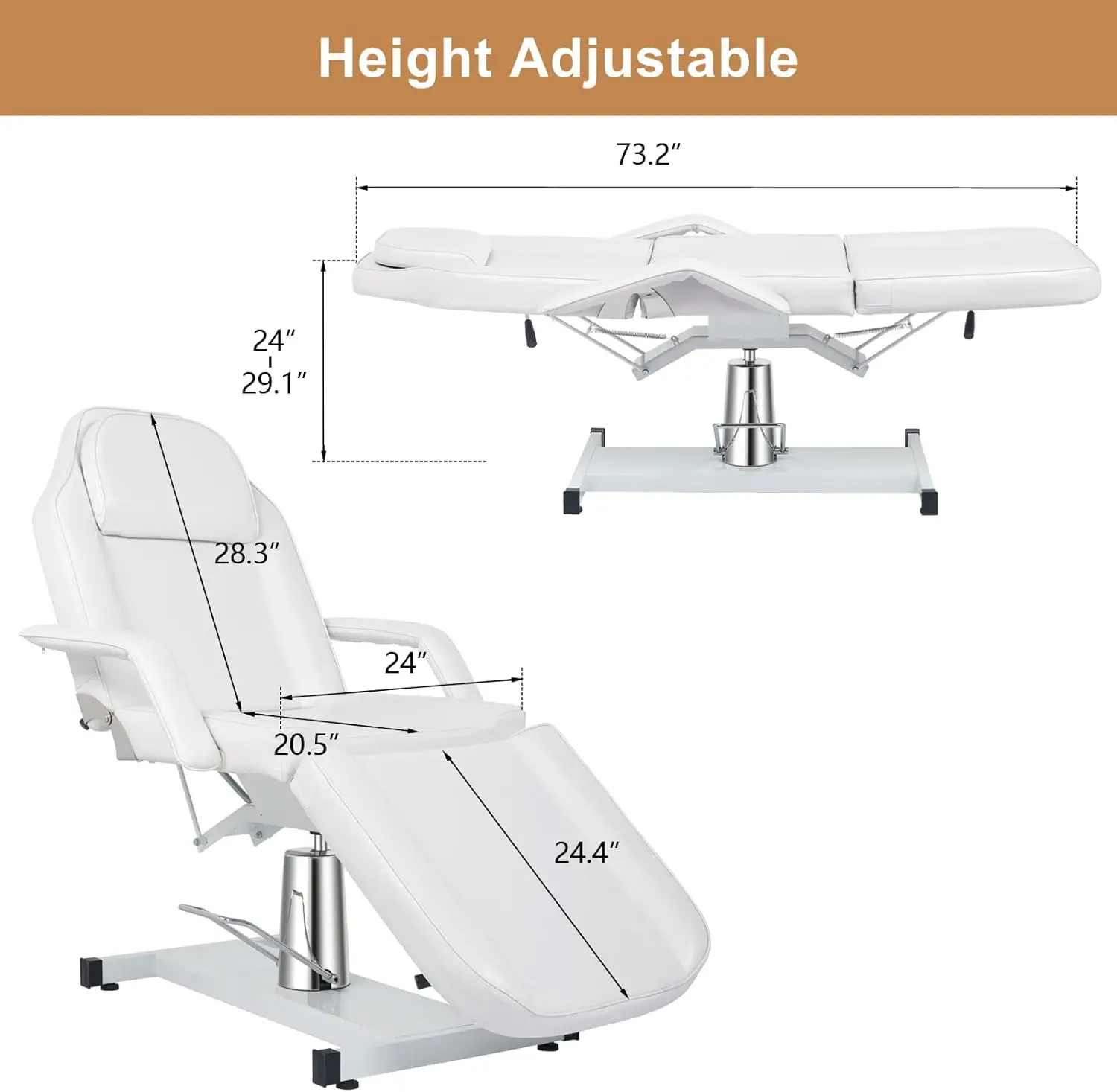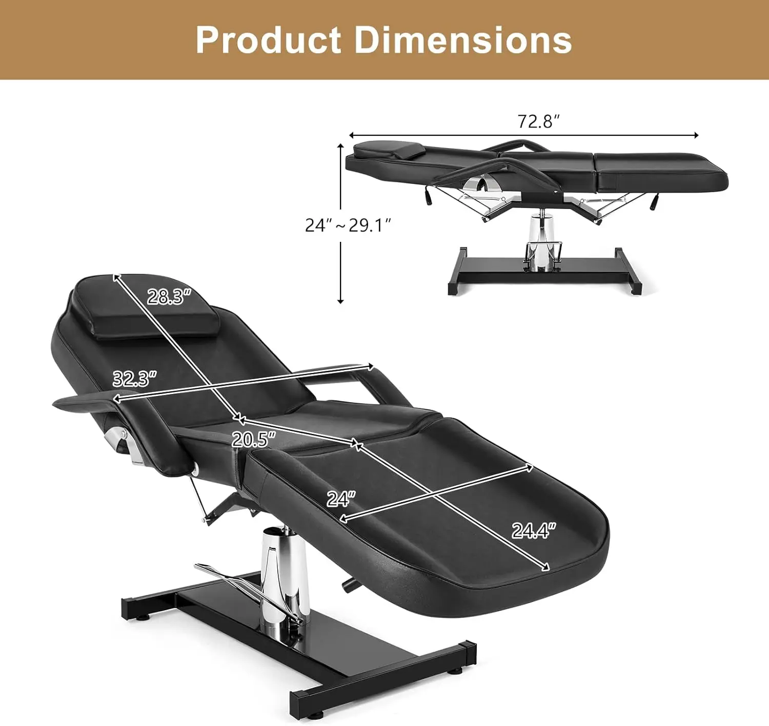 Hydraulic Facial Bed Massage Table, Multi-Purpose 3-Section Tattoo Chair Esthetician Bed, Adjustable Beauty Salon Spa Equipment,