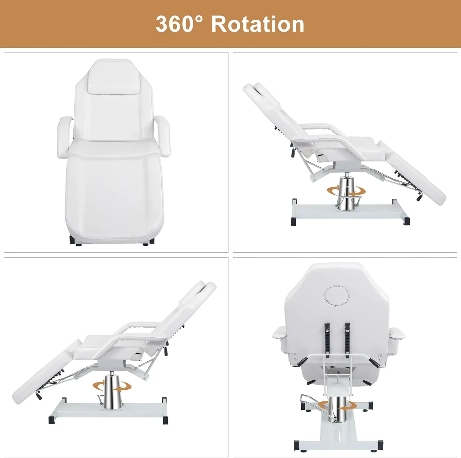 - ★Hydraulic Rotating Facial Bed Table: Equipped with a 360-degree swivel with locking mechanism, which is adjustable in height (Max adjustable range: 6''), provides more flexibility and more convenience to estheticians