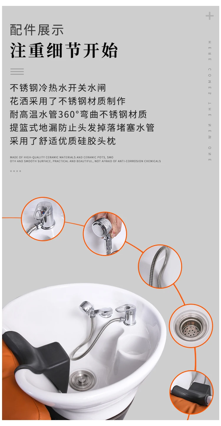 Luxury Head Spa Shampo Chair Ergonomics Shower Head Hair Wash Bed Massage Comfort Silla Peluqueria Salon Furniture MQ50SC