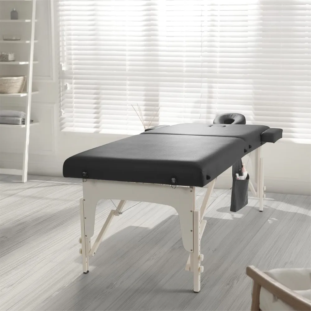 Premium Memory Foam Massage Table,Foldable & Portable Massage Bed, Height Adjustable Spa Bed,Facial Cradle Salon Bed Wooden Legs