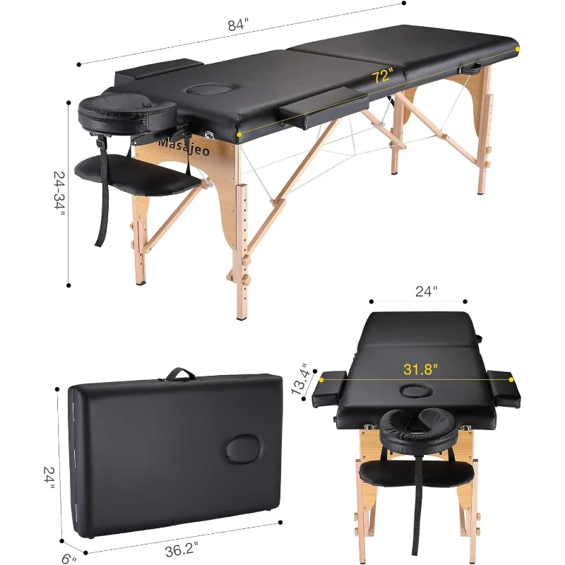 - 【Foldable and Portable】The massage table can be folded that like a portable travel case, you can easily take it anywhere. It is suitable for many occasions, such as a spa, beauty salon, tattoo parlor, clinic, gym, home, etc.