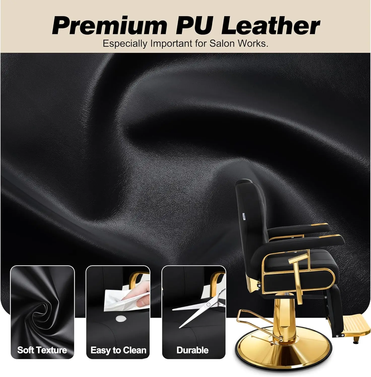 - 🌟【Premium Stainless Steel Frame】Built with a sturdy steel frame, our black gold salon chair stands out from low-cost alternatives that use inferior wooden frames. This design ensures durability for daily use in busy hair salons.