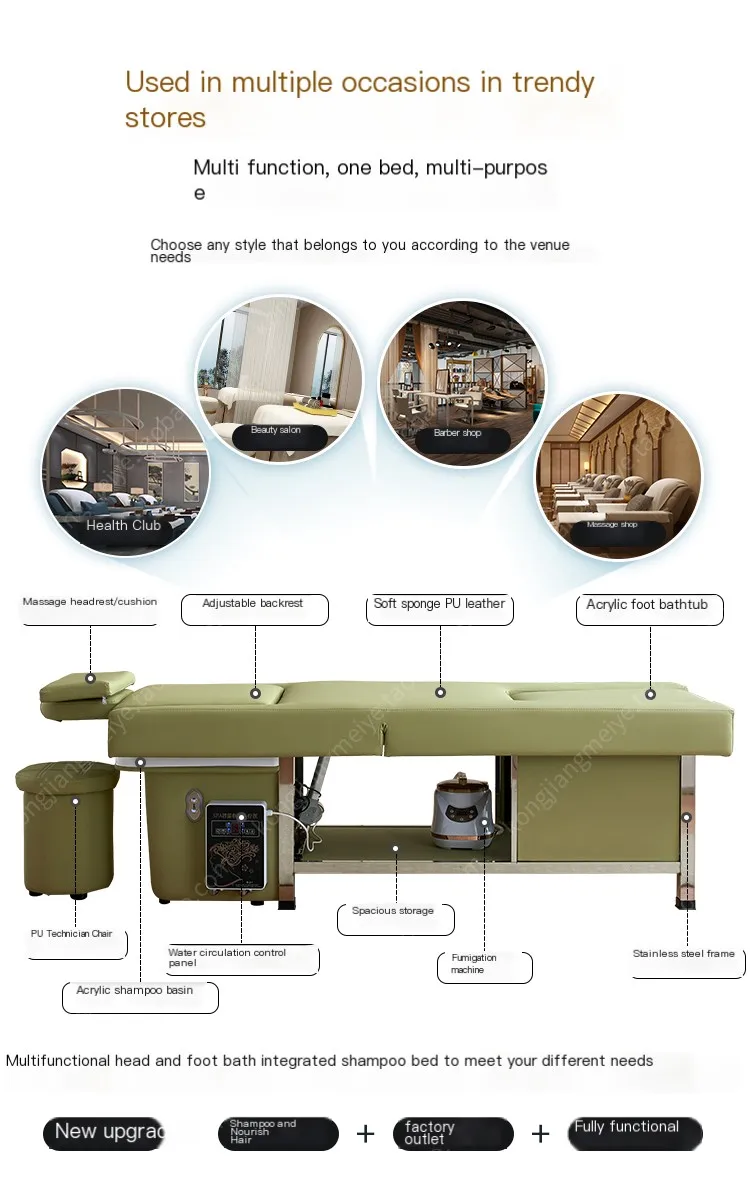 Smart Fumigation Shampo Chair Treatment Foot Shower Water Circulation Shampoo Bed Portable Shampoo Salon Furniture MQ50SC