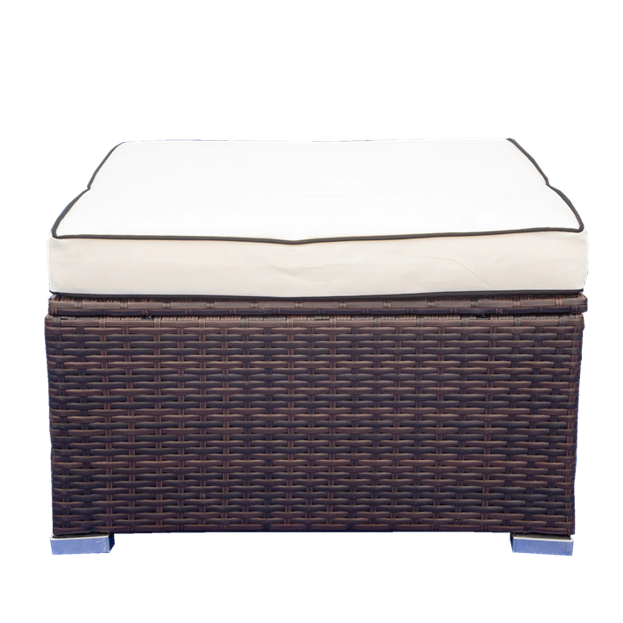·COMBINATION :This sectional wicker furniture set comes with 1 stool w/cushion, 1 x 3 seater sofas w/cushions, 1 table with tempered glassand2 pillow.