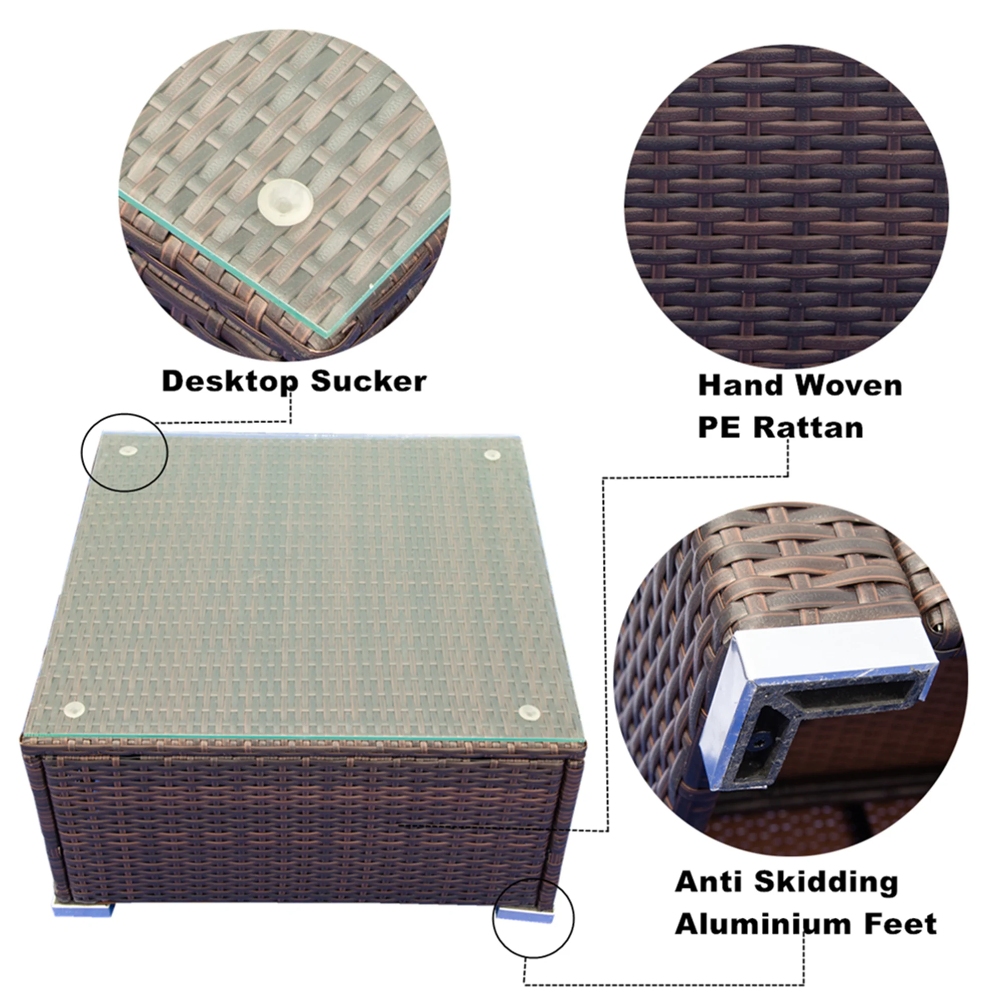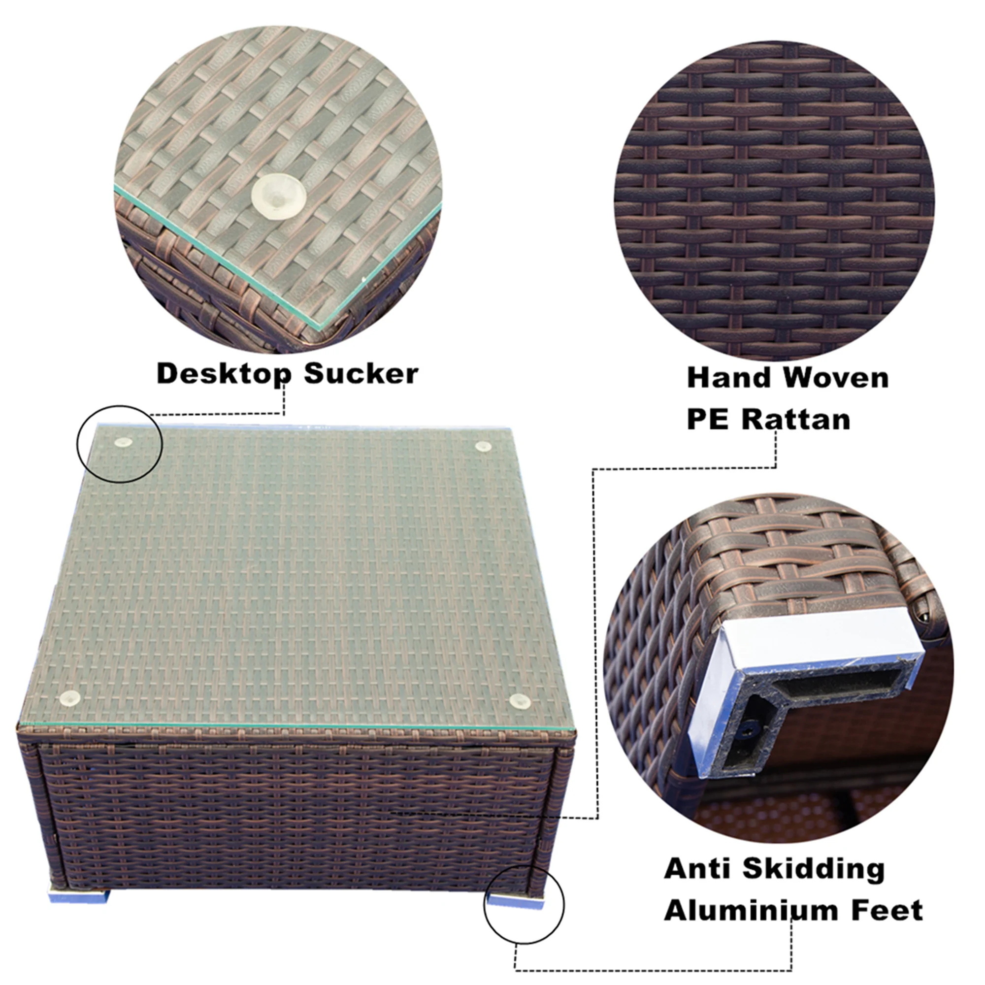 ·STURDY & DURABLE:Powder coated rust free frame with reinforced aluminium legs that can support up to 280 pounds per seatand 110poundsfor table.All-weather hand woven rattan, eco-friendly and mould resistant