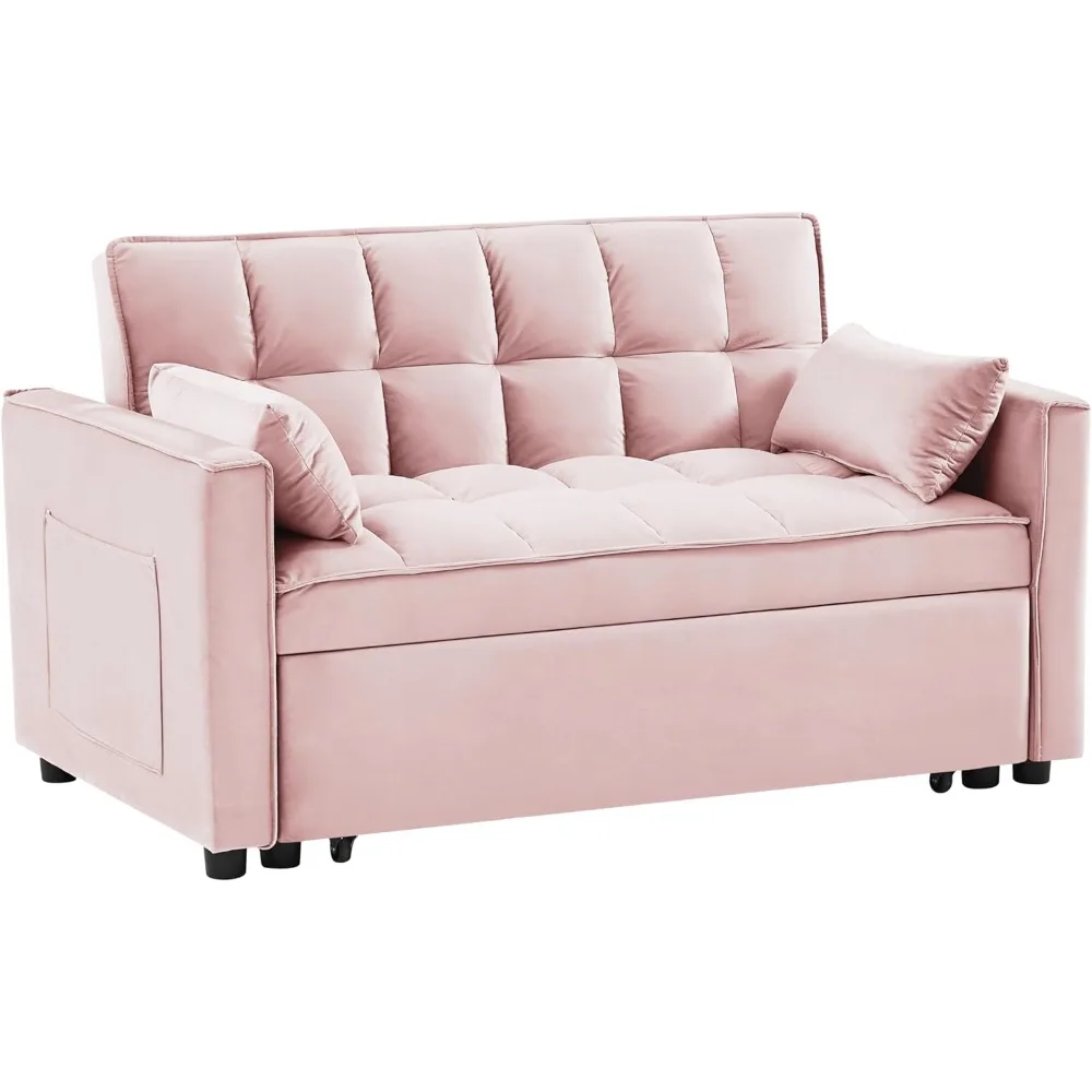 55.2" LoveSeat, Velvet Lounge Futon Chaise, Reversible Bed & Pockets & Toss Pillows, 2-seat Fabric Convertible, Pull Out Couch