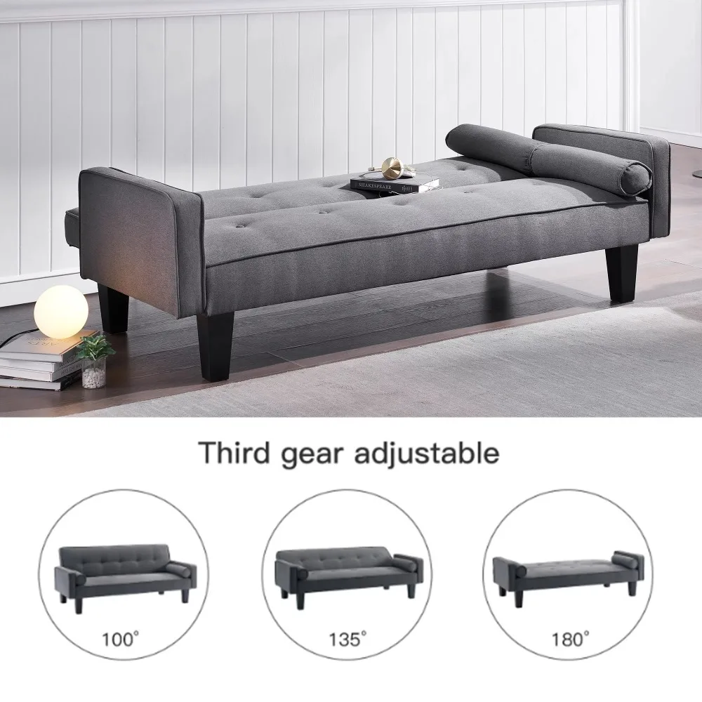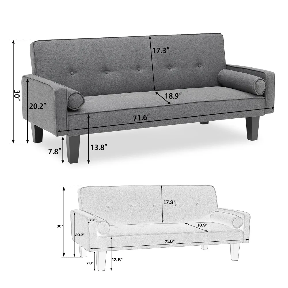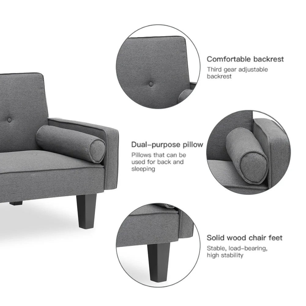 Sofa Convertible into Sofa Bed Includes Two Pillows 72" Dark Grey Cotton Linen Sofa Bed for Family Living Room