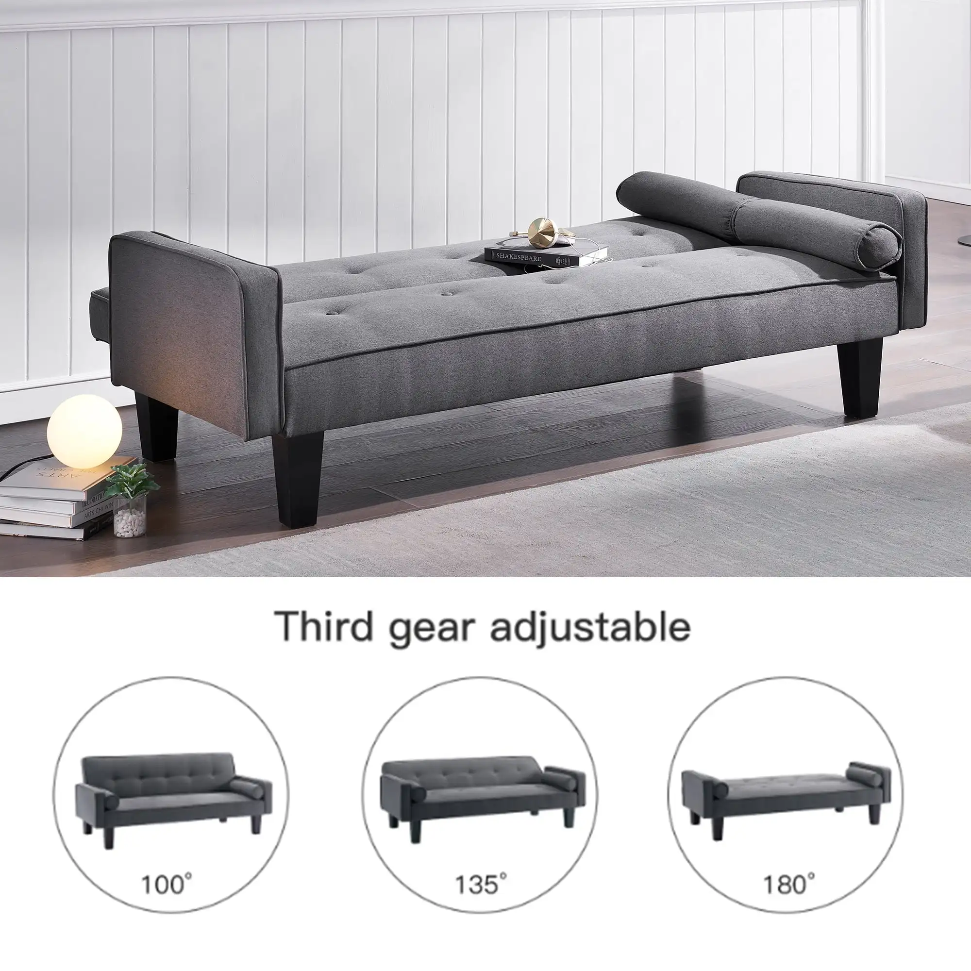 72" Futon Sofa Bed,Upholstered Folding Futon Fabric Couch,Recliner Twin Size Futon Bed Removable Armrests,Modern Sofa for