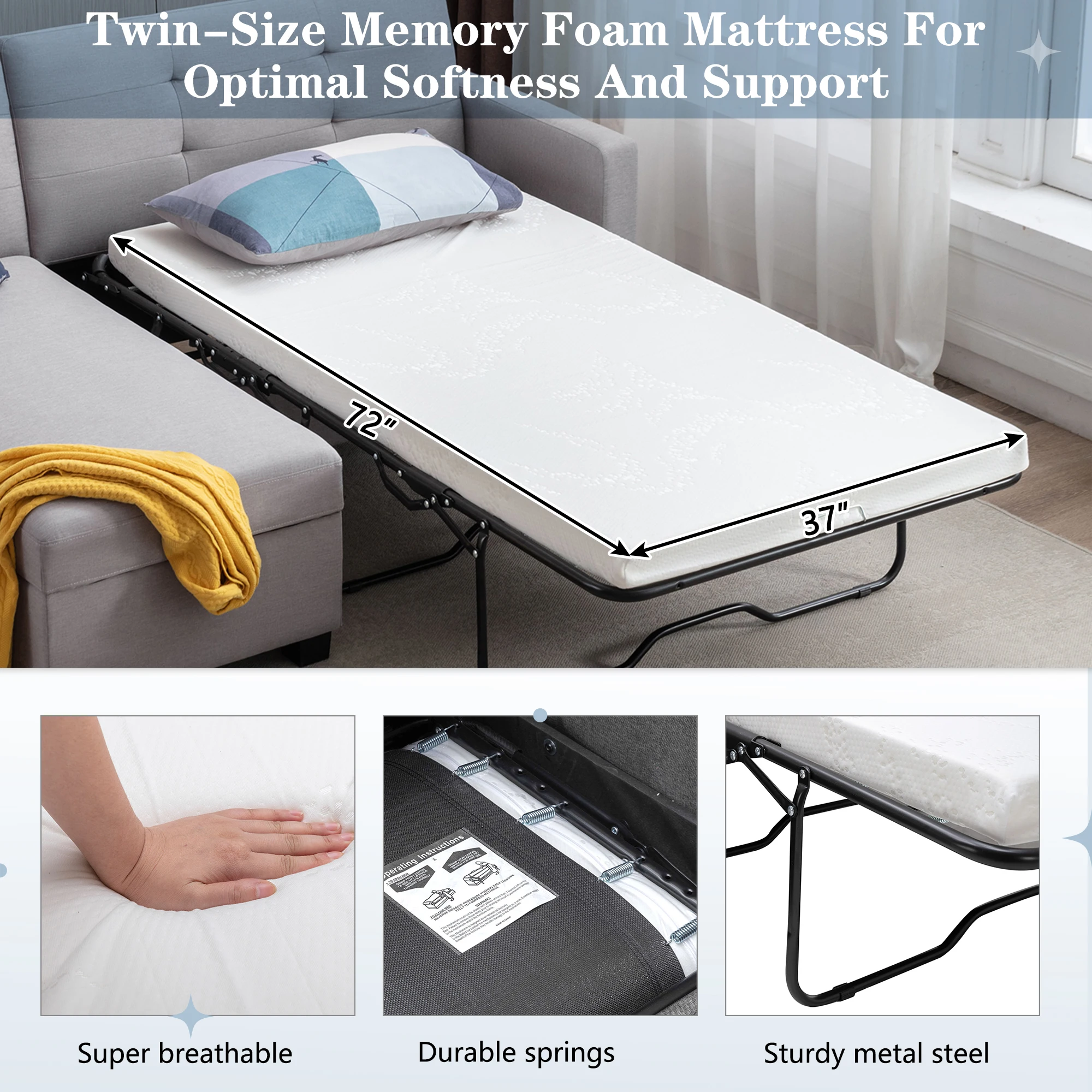 【Sofa Bed Includes Mattresses】This sofa bed includes a foldable mattress, you don't need to buy an extra mattress, just simply prepare a sheet, can enjoy a comfortable sleep.