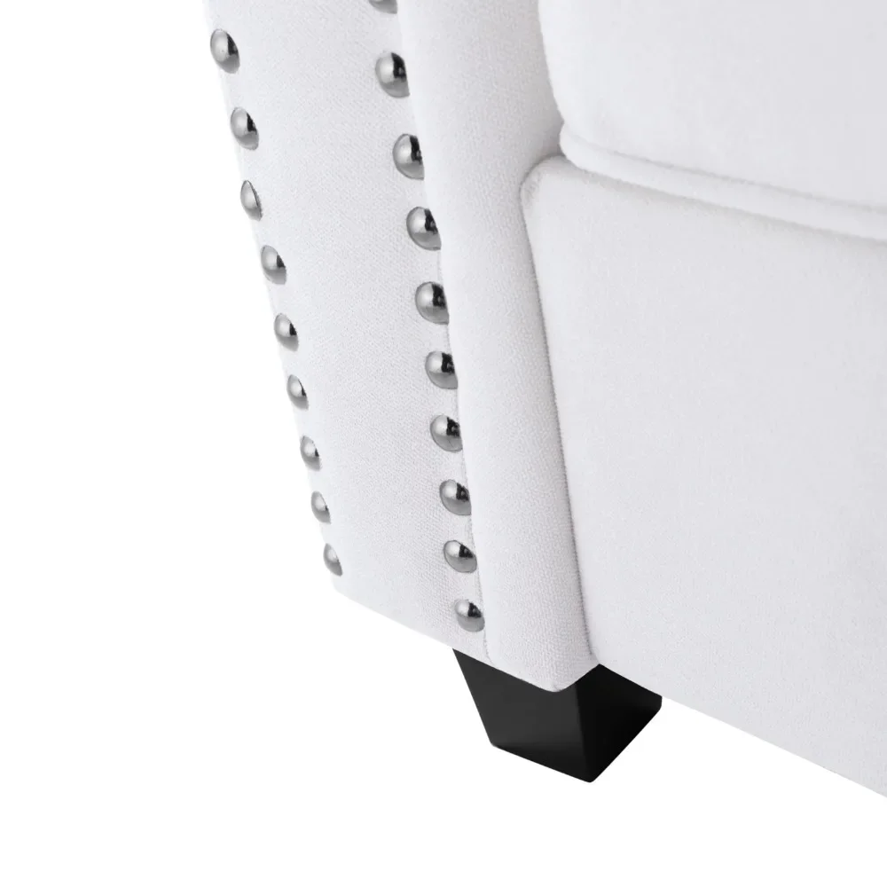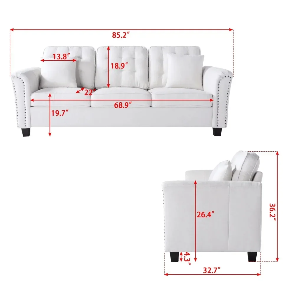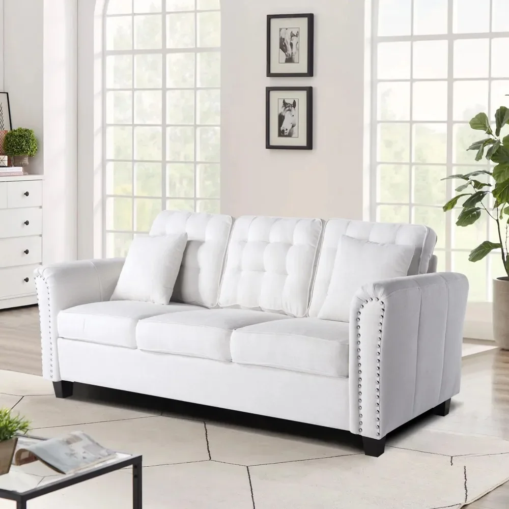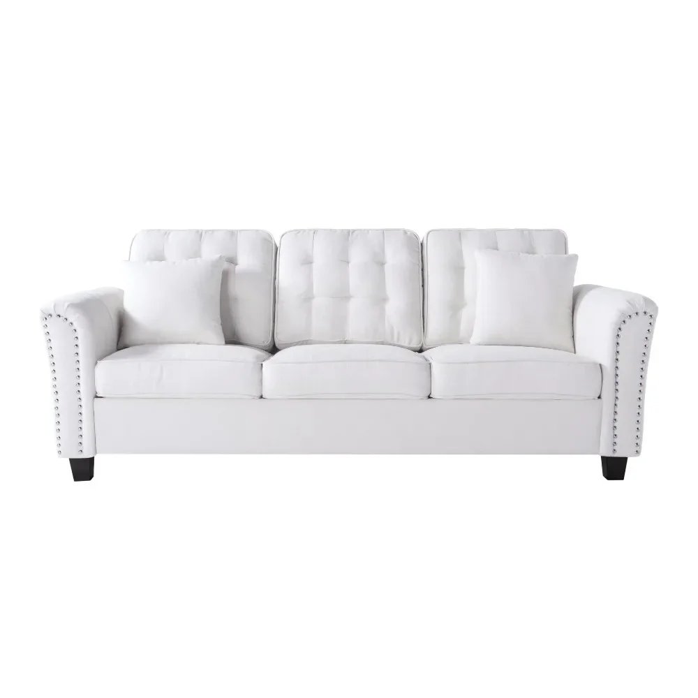 85.2" Modern 3 Seat Classic Modern Sofa with 2 Pillows, White Tufted Couch for Living Room