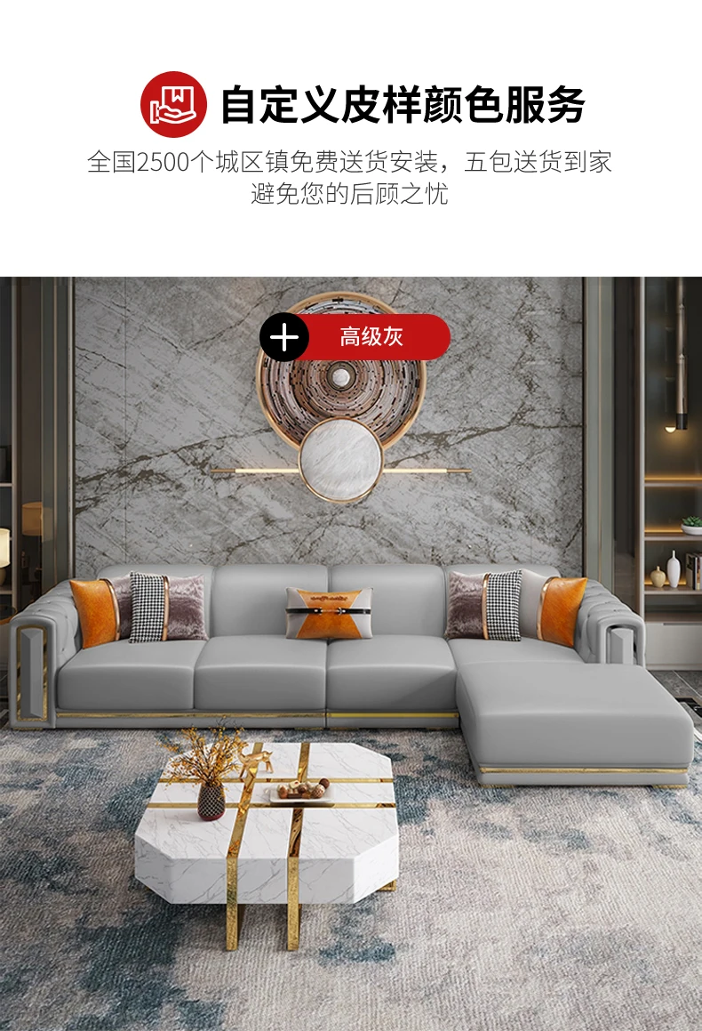 American Genuine Leather Sofa Combination Living Room Size Unit 2023 New Top Layer Cowhide Light Luxury Sofa Modern and Simple