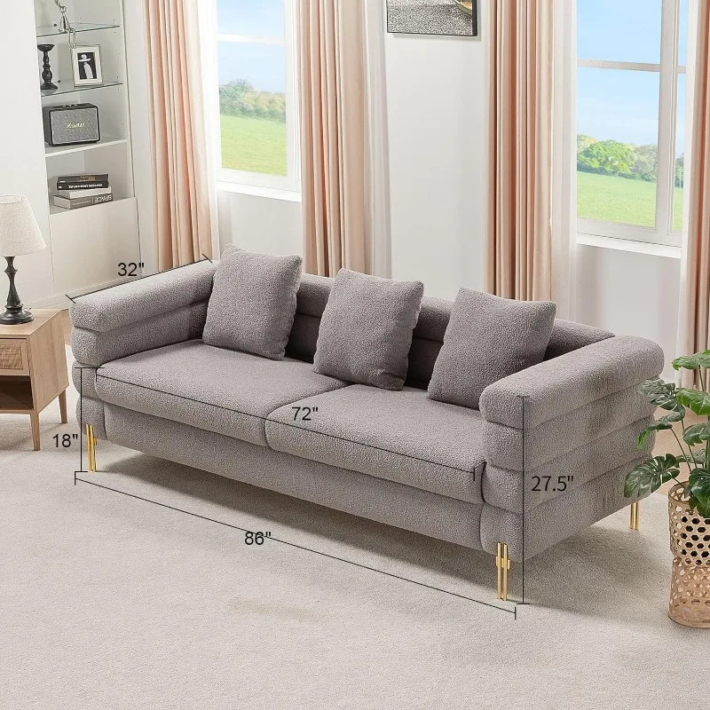 • 【Streamline Moderne Style】Distinctive silhouette of bouclé couch is inspired by Streamline Moderne, an international Art Deco design, features soft curving forms and long horizontal lines with metallic sheen leg. Get it and own a stylish home.