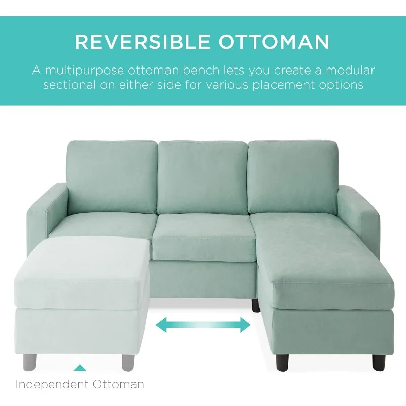 Best Choice Products Upholstered Sectional Sofa for Home, Apartment, Dorm, 3-Seat, L-Shape Design, Reversible Ottoman Bench