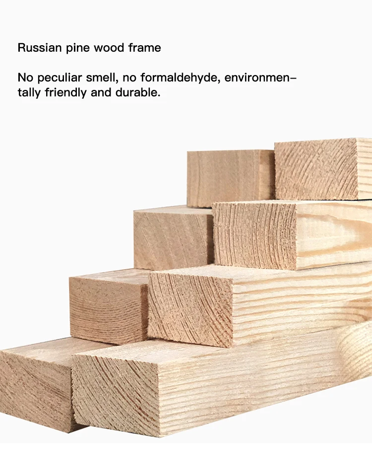 C. Using Russian pine wood frame, no peculiar smell, no formaldehyde, environmentally friendly and durable. Sturdy and durable, not easy to deform and crack, and have a long service life.
