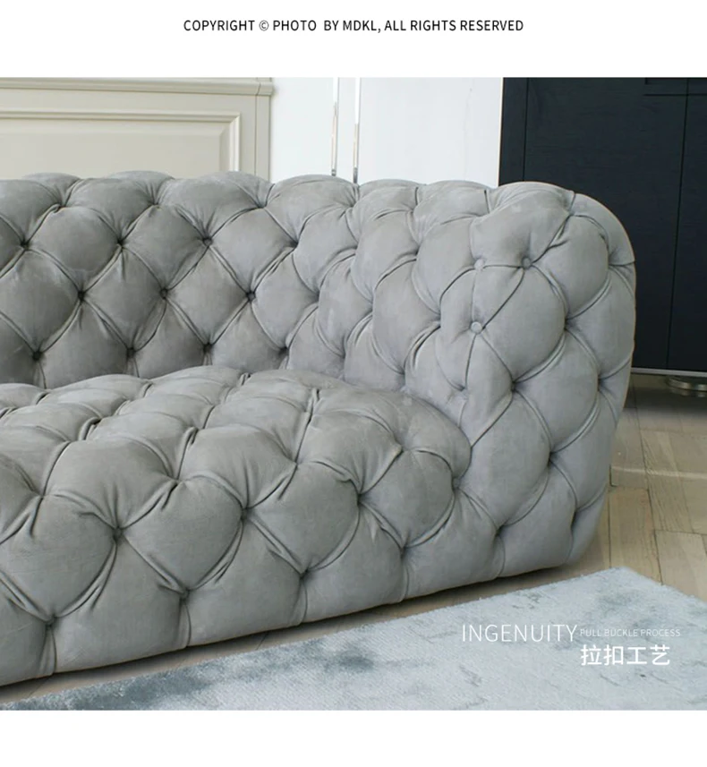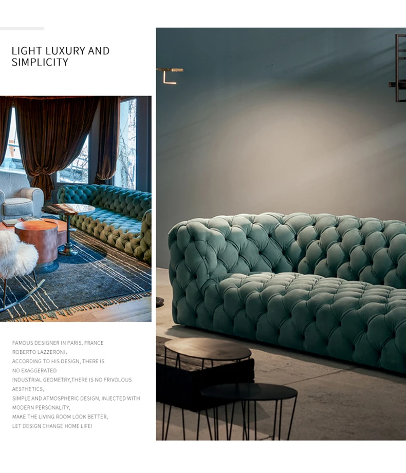 Blue Velvet Straight Row Multi Seat Armchair Custom Upholstered Chesterfield Sofa Couch Set for Living Room High End Furniture