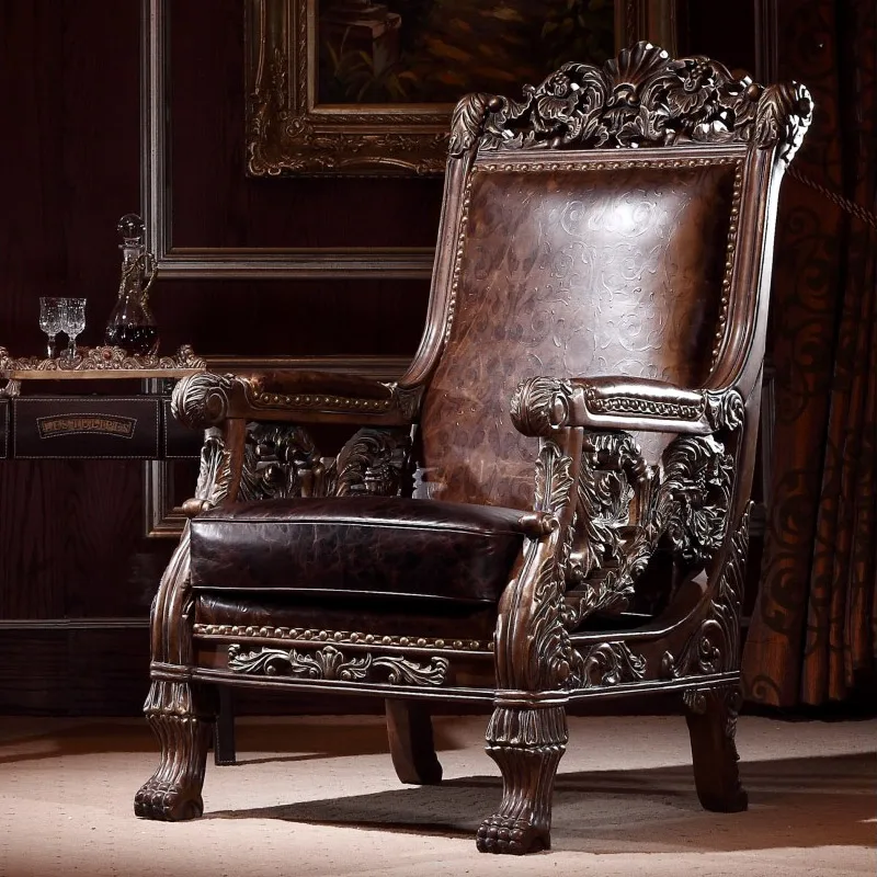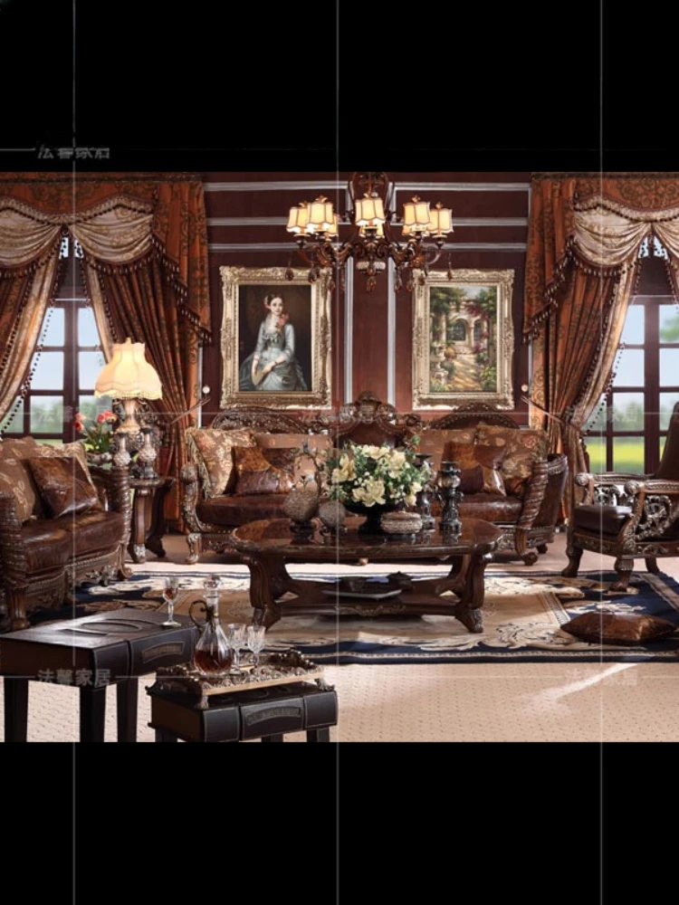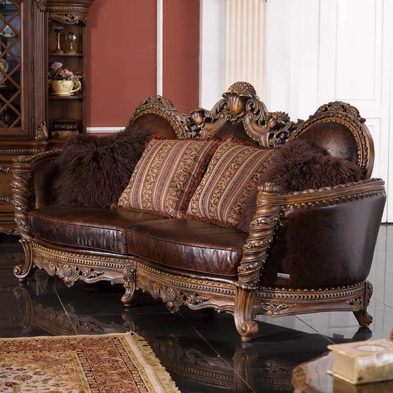 Classical Oil Wax Leather Sofa European-Style Large Apartment Living Room