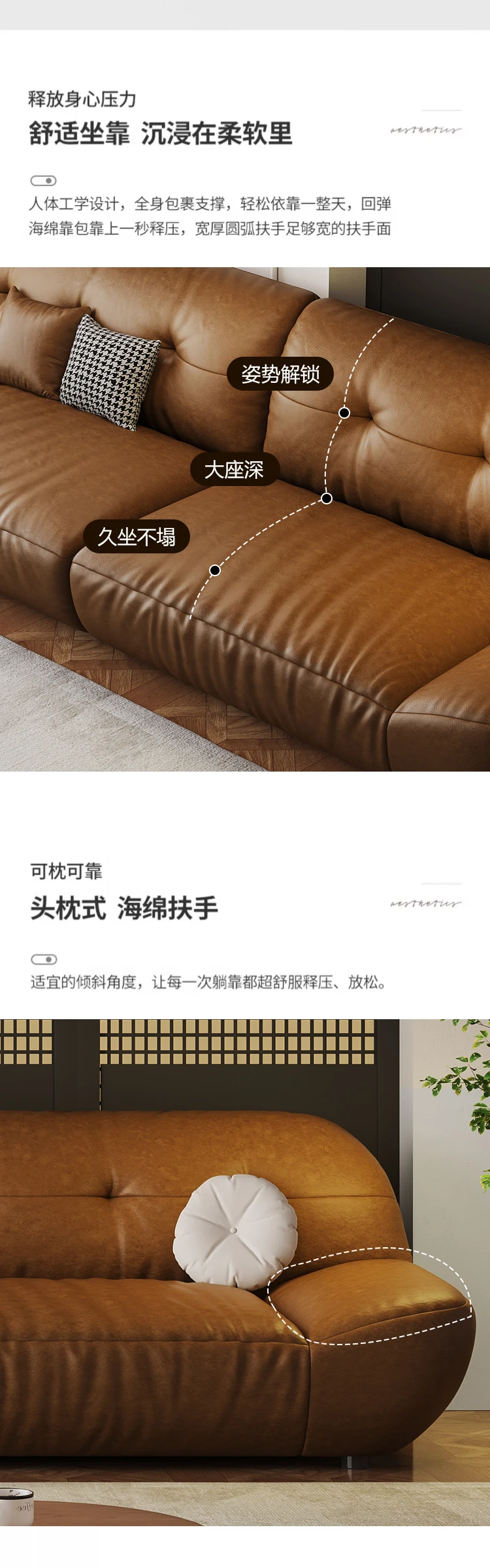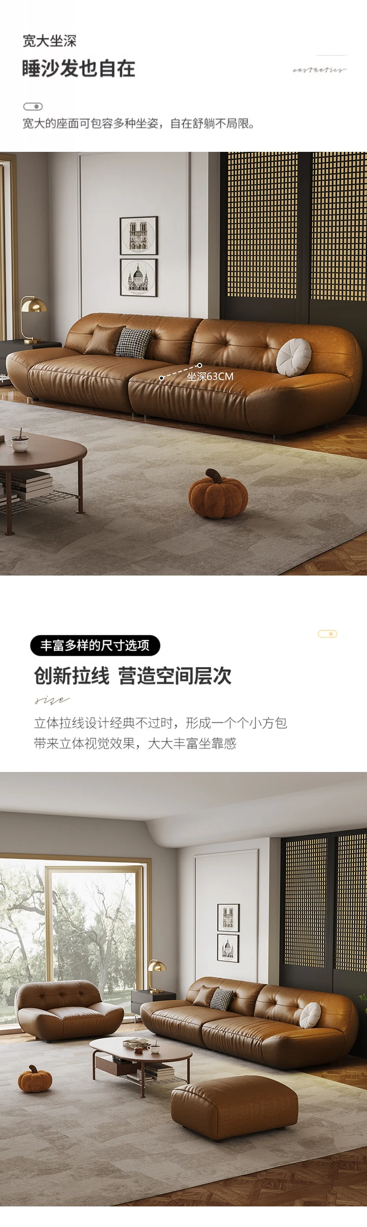 Cloud sofa modern light luxury leather sofa living room first floor cowhide brown leather sofa