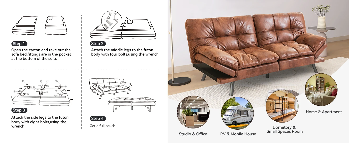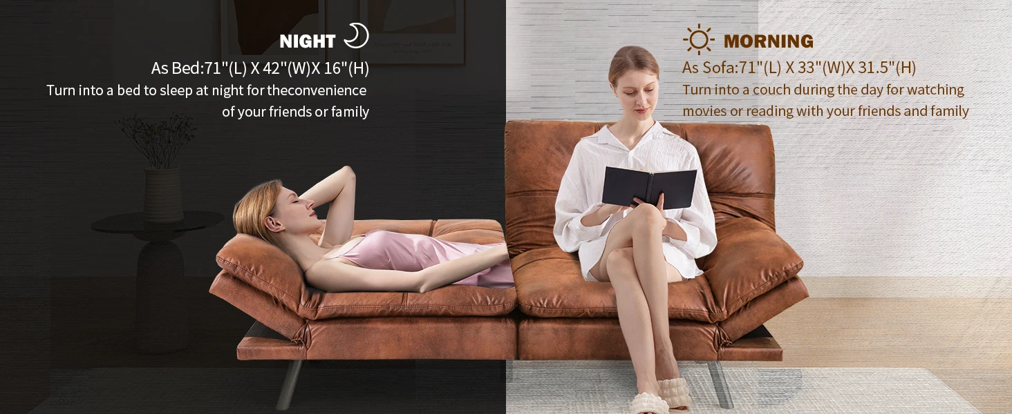 Convertible Futon Sofa Couch Bed,Futon Couch Bed,Memory Foam Futon Sleeper Sofa,Loveseat Sofa Bed,Small Splitback Faux Leather