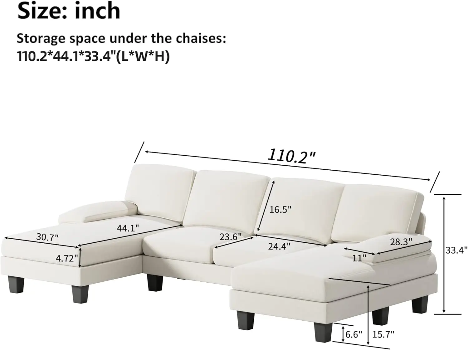 • 【Double Chaise Sofa】It's unnecessary to compete with your partner about the best seat on your couch because all the positions are comfortable. The U-shaped sectional sofa suits any interior décor and embraces your friends in cozy, comfortable vibes!