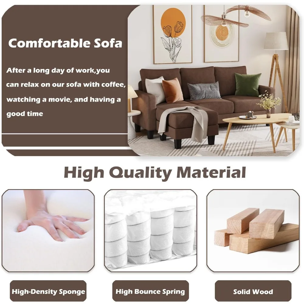 Convertible Sectional 3 L-Shaped Couch Soft Seat with Modern Linen Fabric,Small Space Sofas for Living Room,Apartment and Office