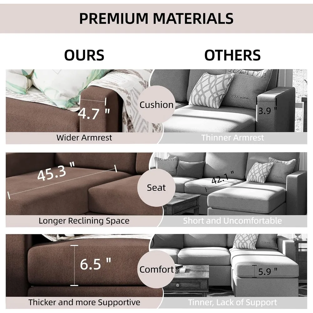 - Versatile Sectional Sofa : Sectional sofa with an extra wide chaise lounge for maximum comfort,When friends come by, you can place the ottoman on either side of the sofa at random