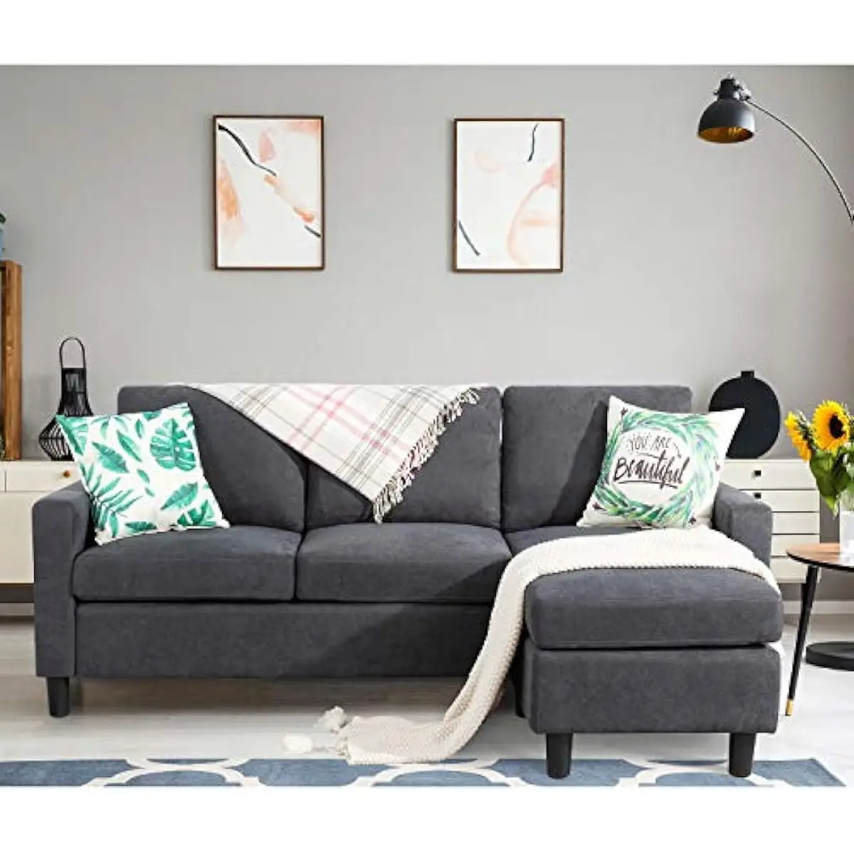 Convertible Sectional Sofa Couch, Modern Linen Fabric L-Shaped , 3-Seat Sofa Sectional with Reversible Chaise (Dark Grey)